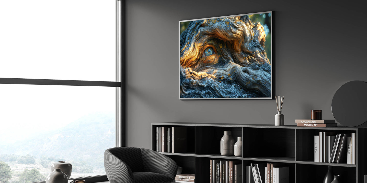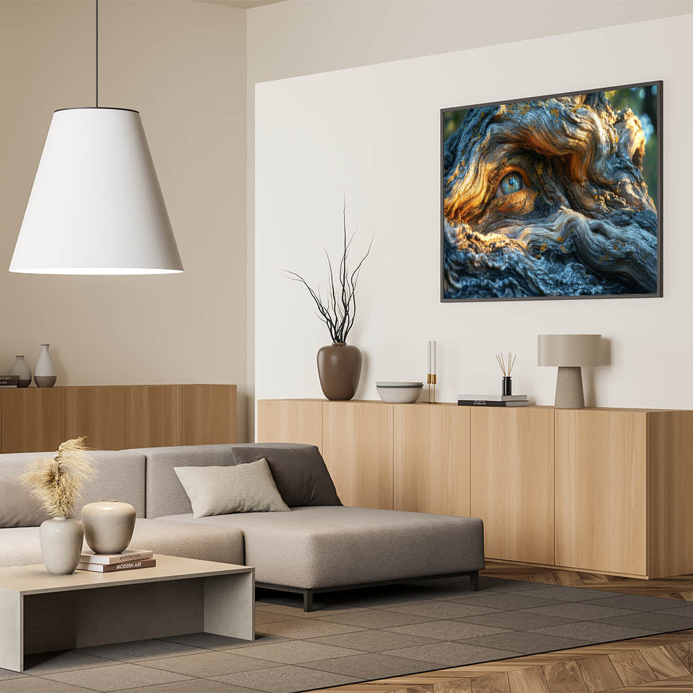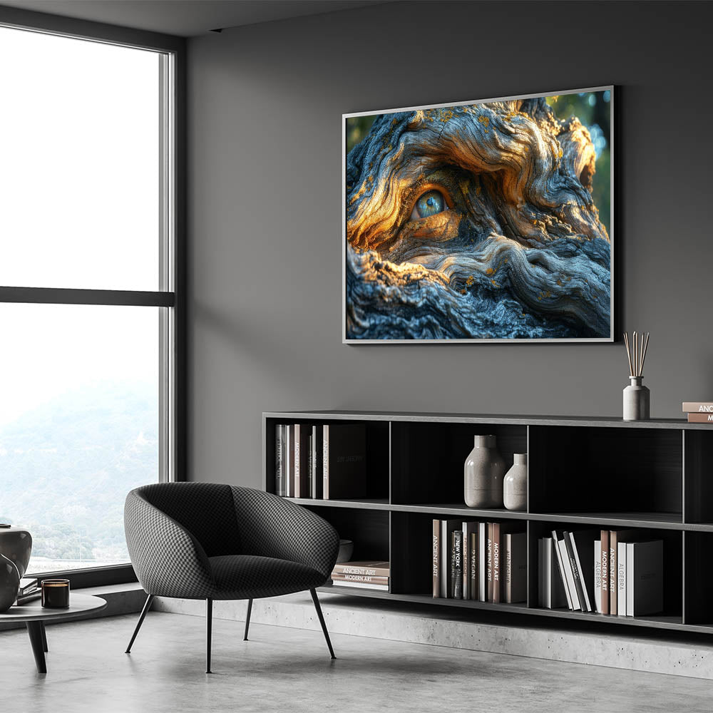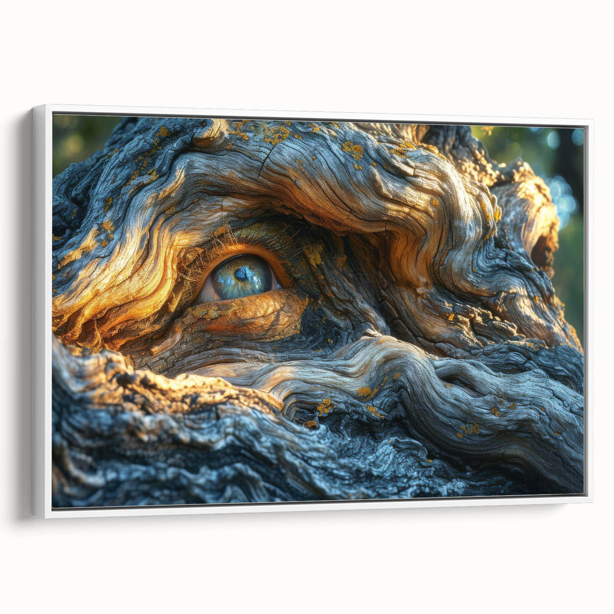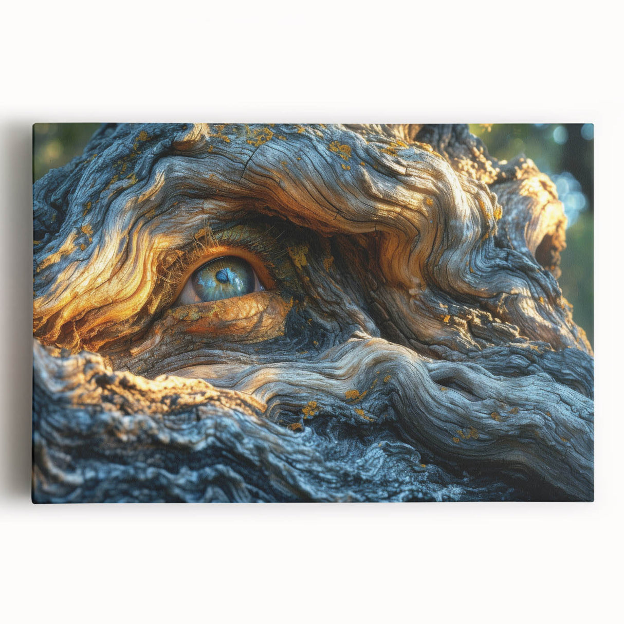 Unveil the mystery of nature with this stunning Close-Up Tree Wall Art from our Nature Close-Up Art Collection. This surreal artwork captures an otherworldly blend of nature and wildlife, featuring the intricate textures of gnarled tree bark intertwined with the striking presence of an animal's eye. Perfect for anyone seeking a captivating, conversation-starting piece of Wildlife Canvas Art, this nature-inspired artwork adds depth and creativity to any room.