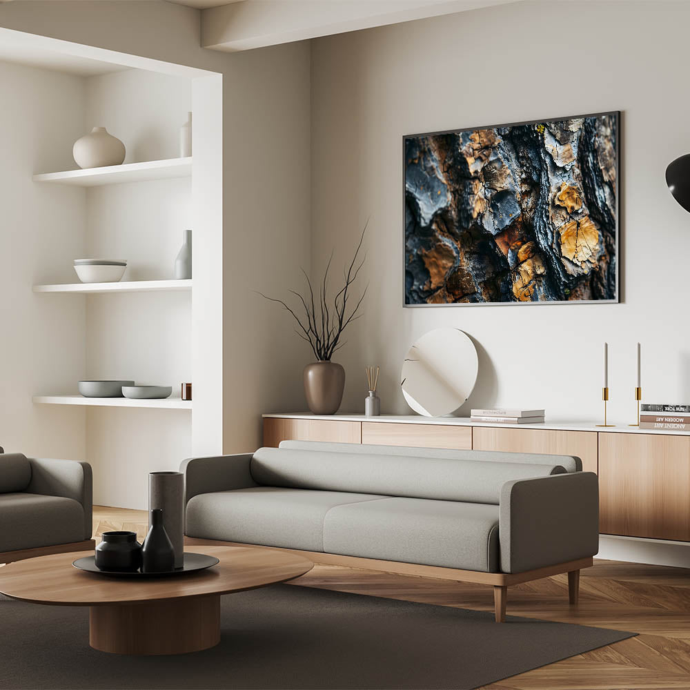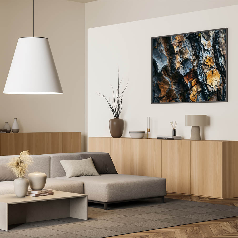 Whether framed or on canvas, this textured tree bark art piece brings a sense of warmth and connection to the natural world into your home. It’s perfect for anyone looking to create a calming, nature-inspired space.