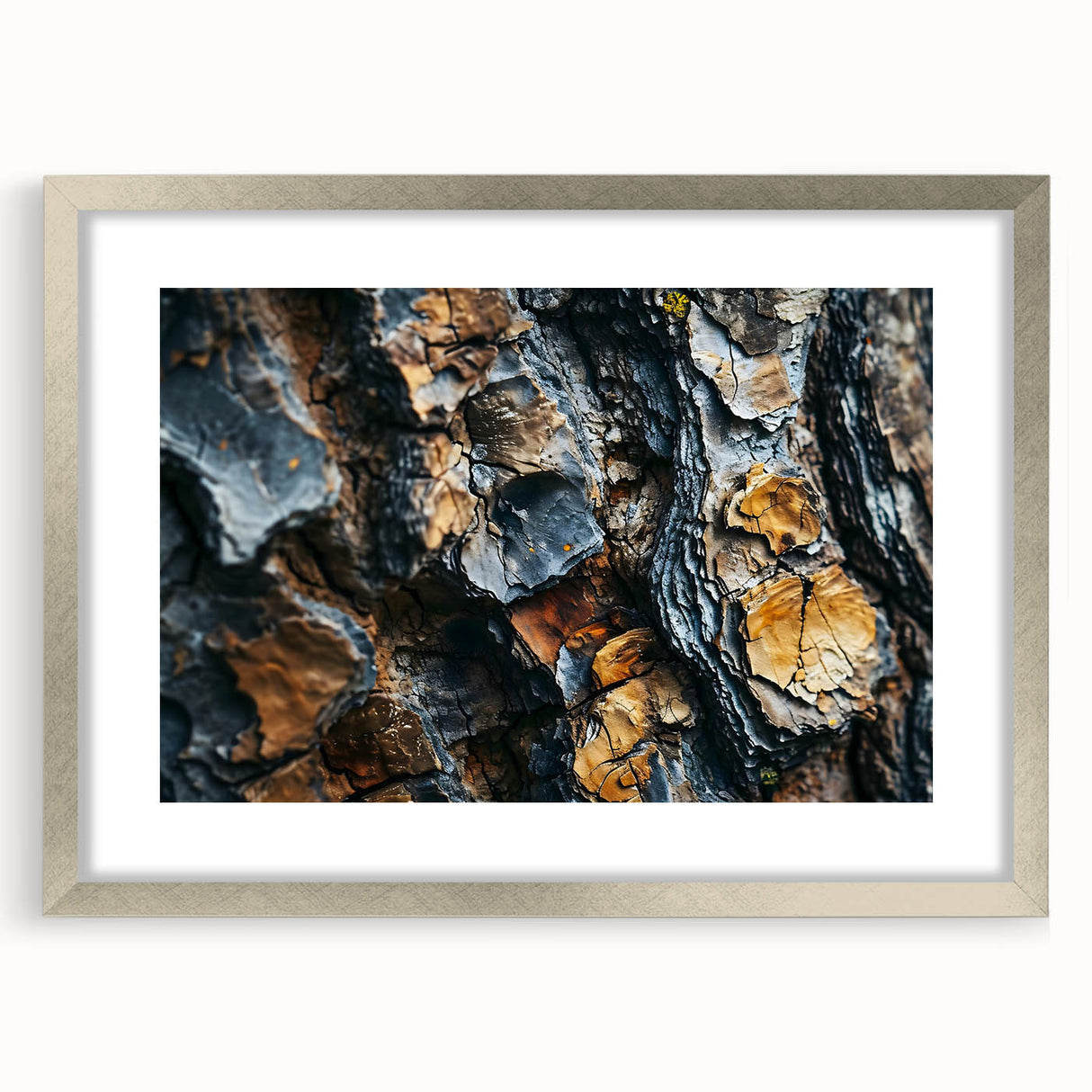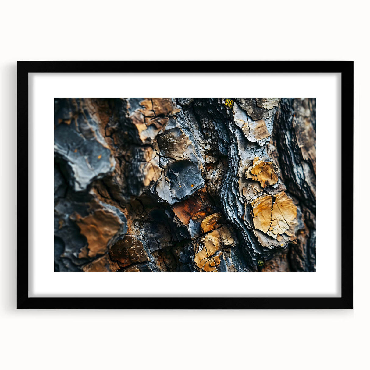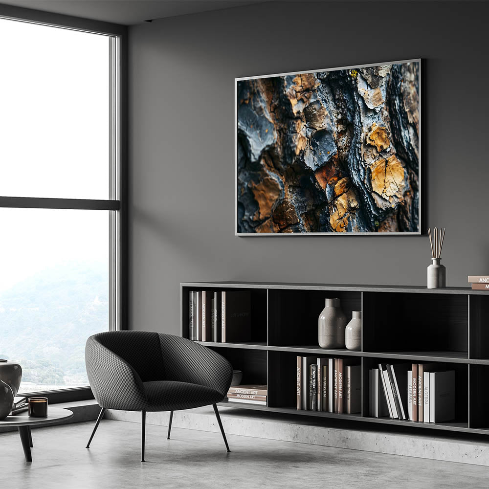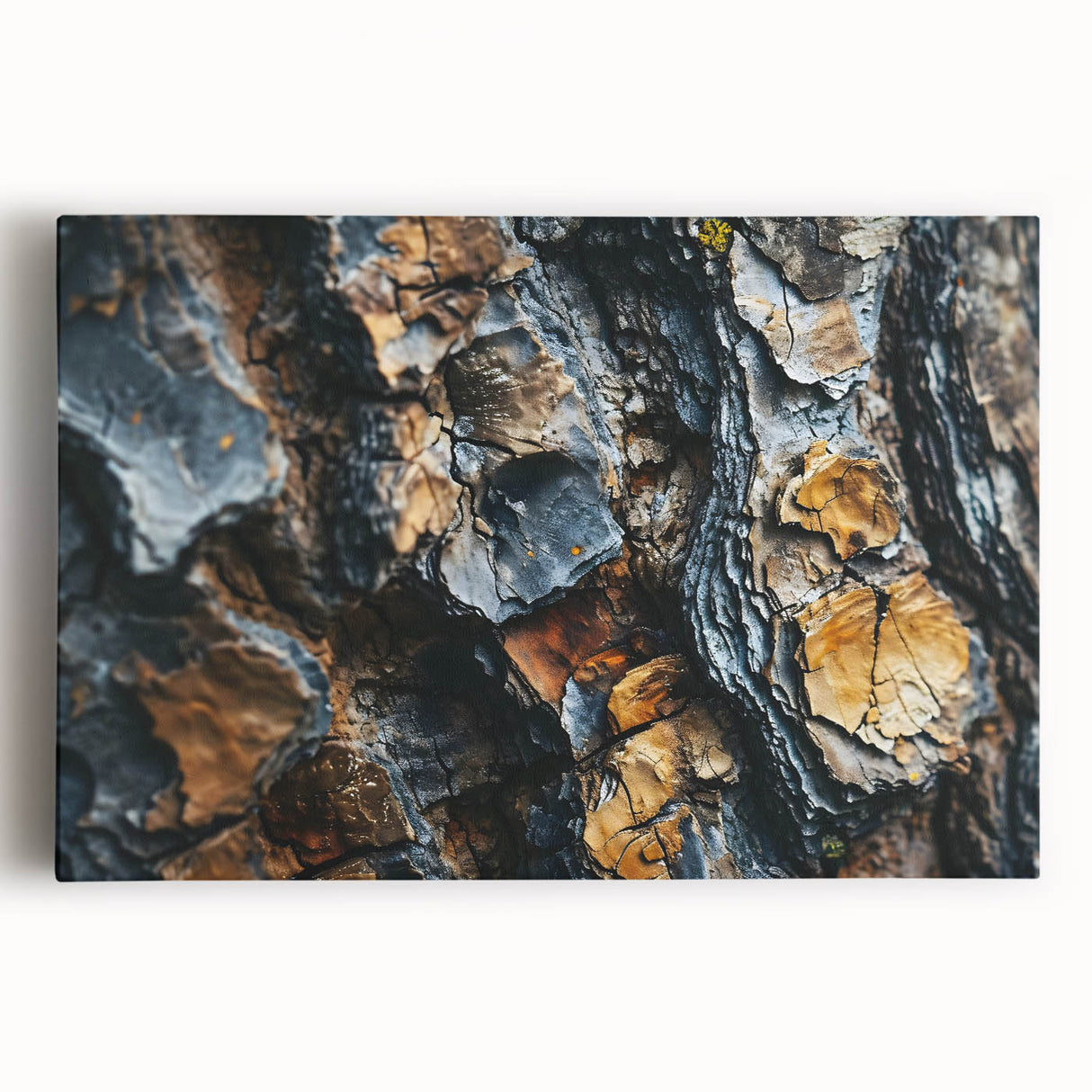 This detailed close-up of textured tree bark brings the raw, earthy beauty of nature into your home decor. Featuring a rich blend of earthy browns, dark grays, and muted blues, this tree wall art showcases the natural textures and layers of the bark, creating an inviting and organic atmosphere. The intricate details of the cracked bark provide depth and a sense of timelessness, making it an ideal piece for those who appreciate rustic and nature-inspired designs.