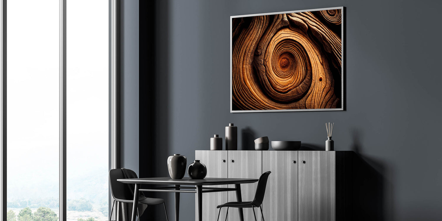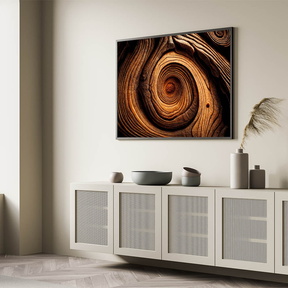 Bring the beauty of nature into your home with this stunning tree wall art, featuring a close-up of mesmerizing circular tree patterns. The concentric rings in this artwork highlight the timeless growth of trees, making it a perfect centerpiece for any nature lover’s home decor. This nature close-up wall art not only captivates with its intricate details but also adds a modern and organic touch to your space.