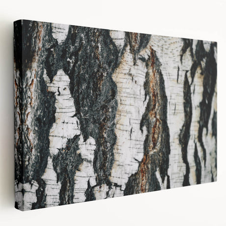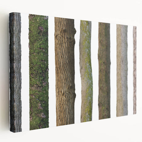 • Close-up of tree bark on a large stretched canvas, displaying intricate textures in earthy tones, ideal for kitchen wall art.