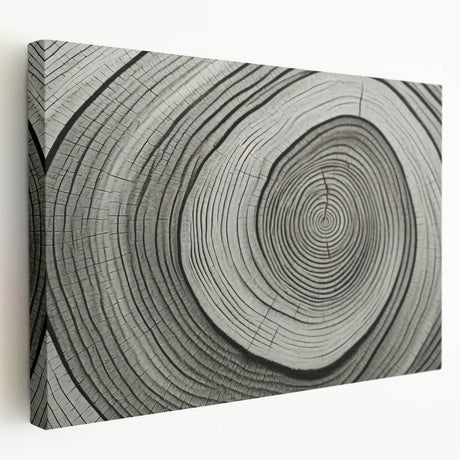 • Close-up view of tree bark on a large stretched canvas, featuring textured gray and brown tones.