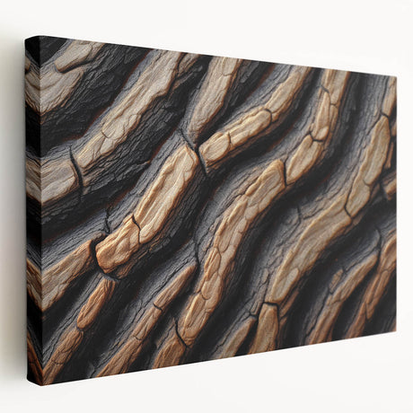 • Close-up image of tree bark on a stretched canvas, displaying intricate textures in earth tones, ideal for kitchen wall art.