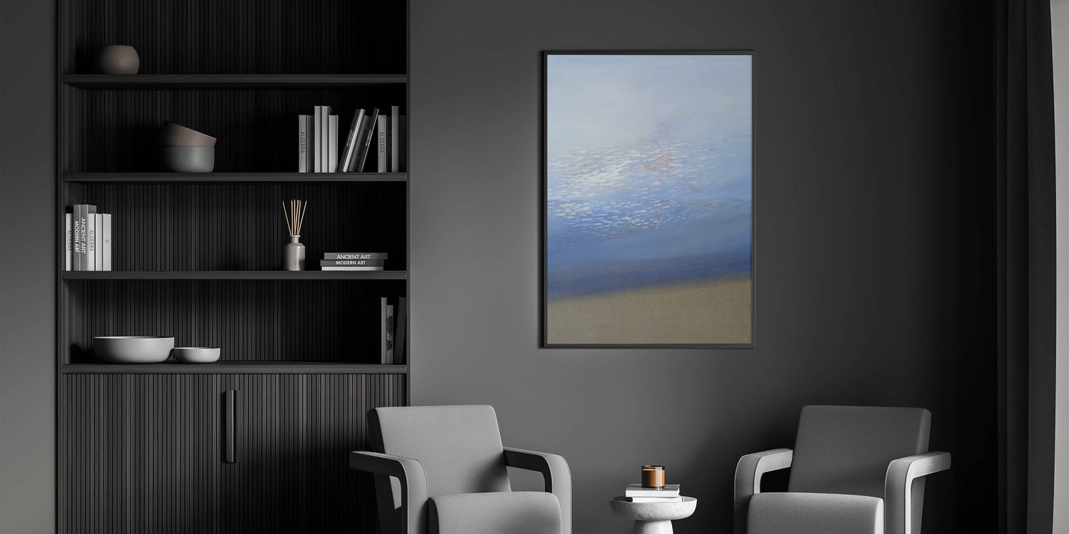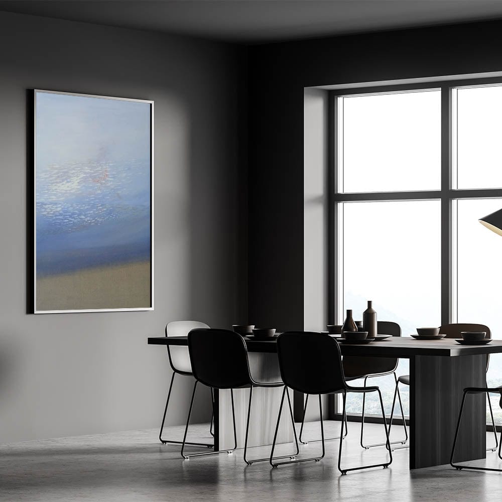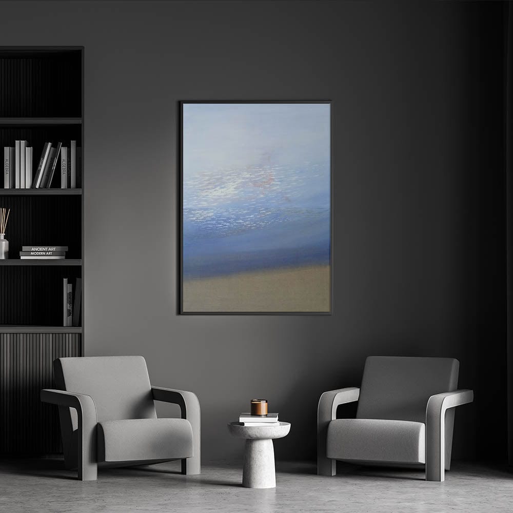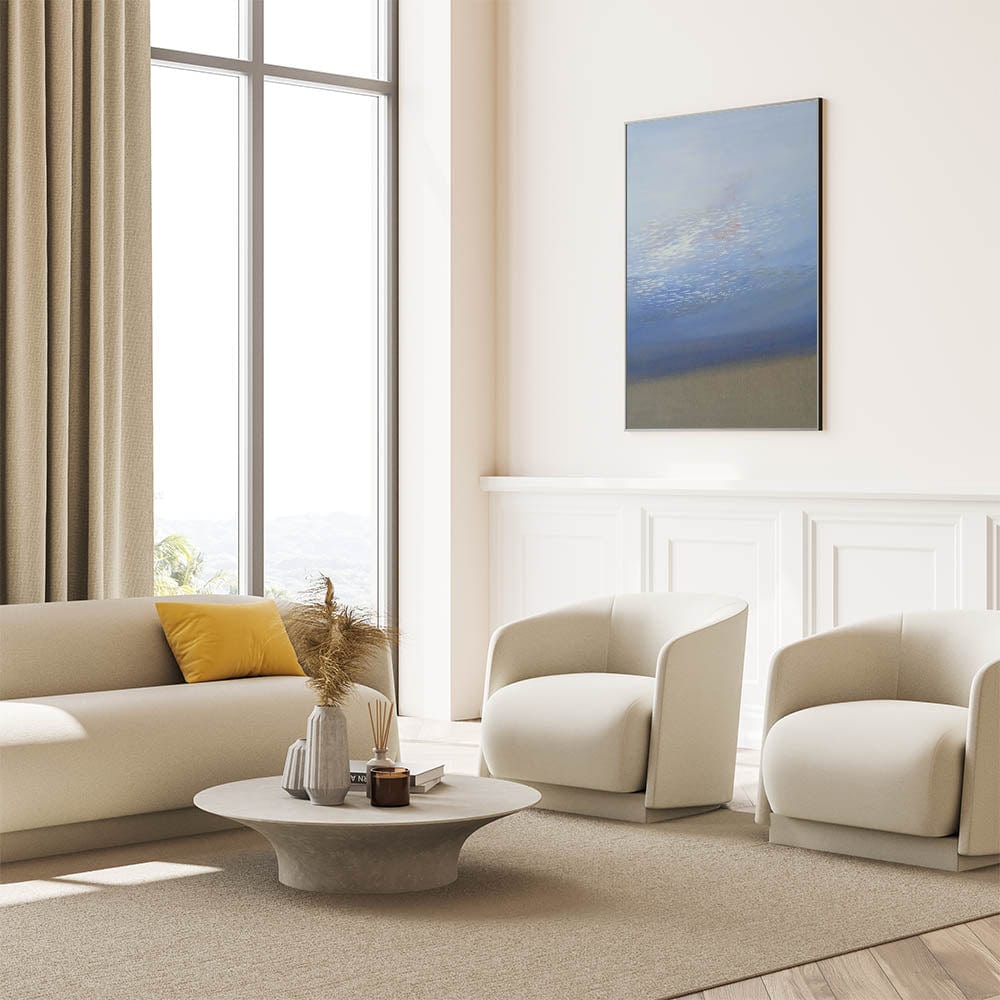 Create a peaceful ambiance with this modern art print, a delicate blend of soft blue, white, and beige hues. The fluid brushstrokes and airy tones capture a sense of calm, making this abstract canvas wall art perfect for contemporary interiors. Whether placed in a bedroom, living room, or office, this piece enhances the space with its minimalist elegance.
