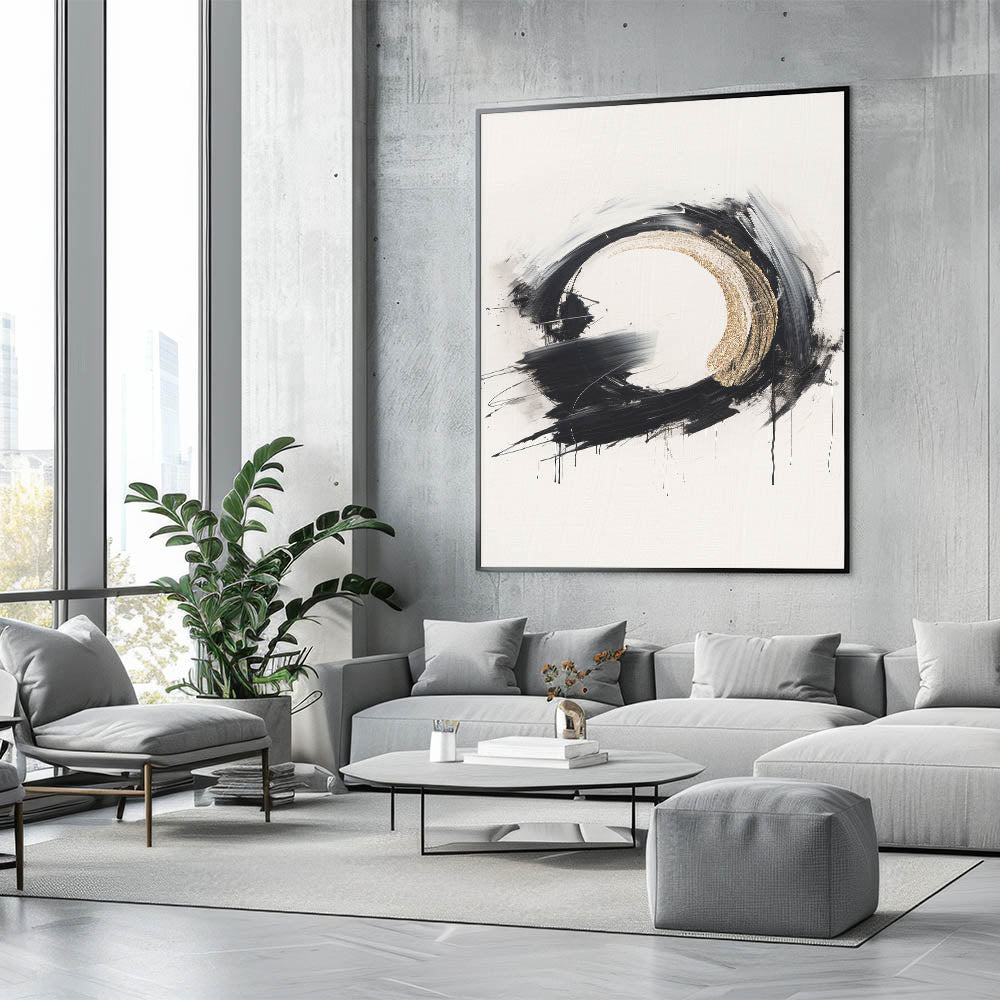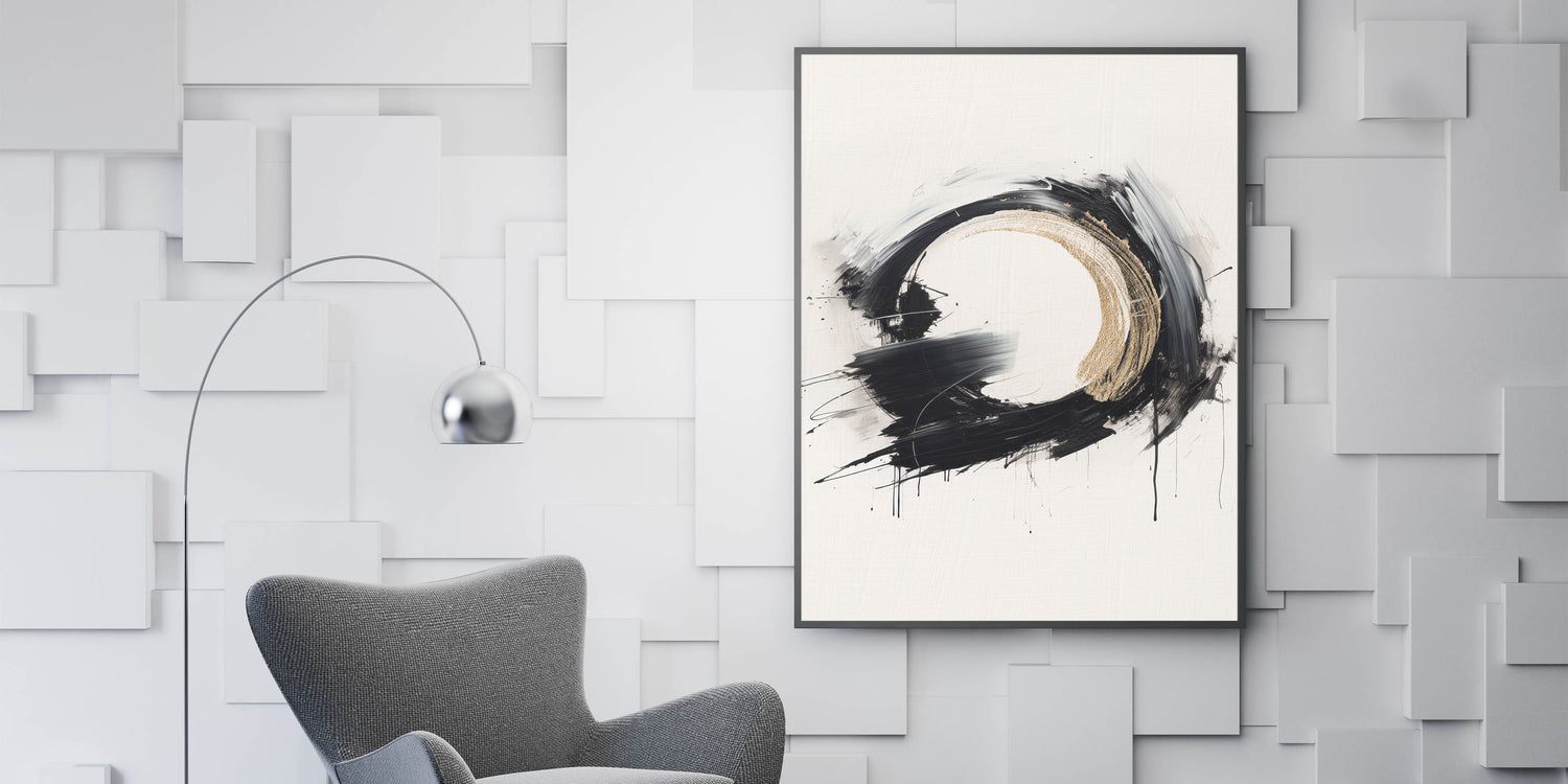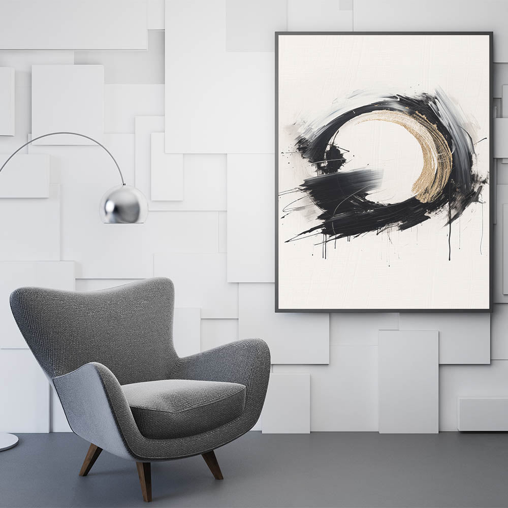 Modern Circular Abstract Art with Gold Accents - Bold Monochrome Decor