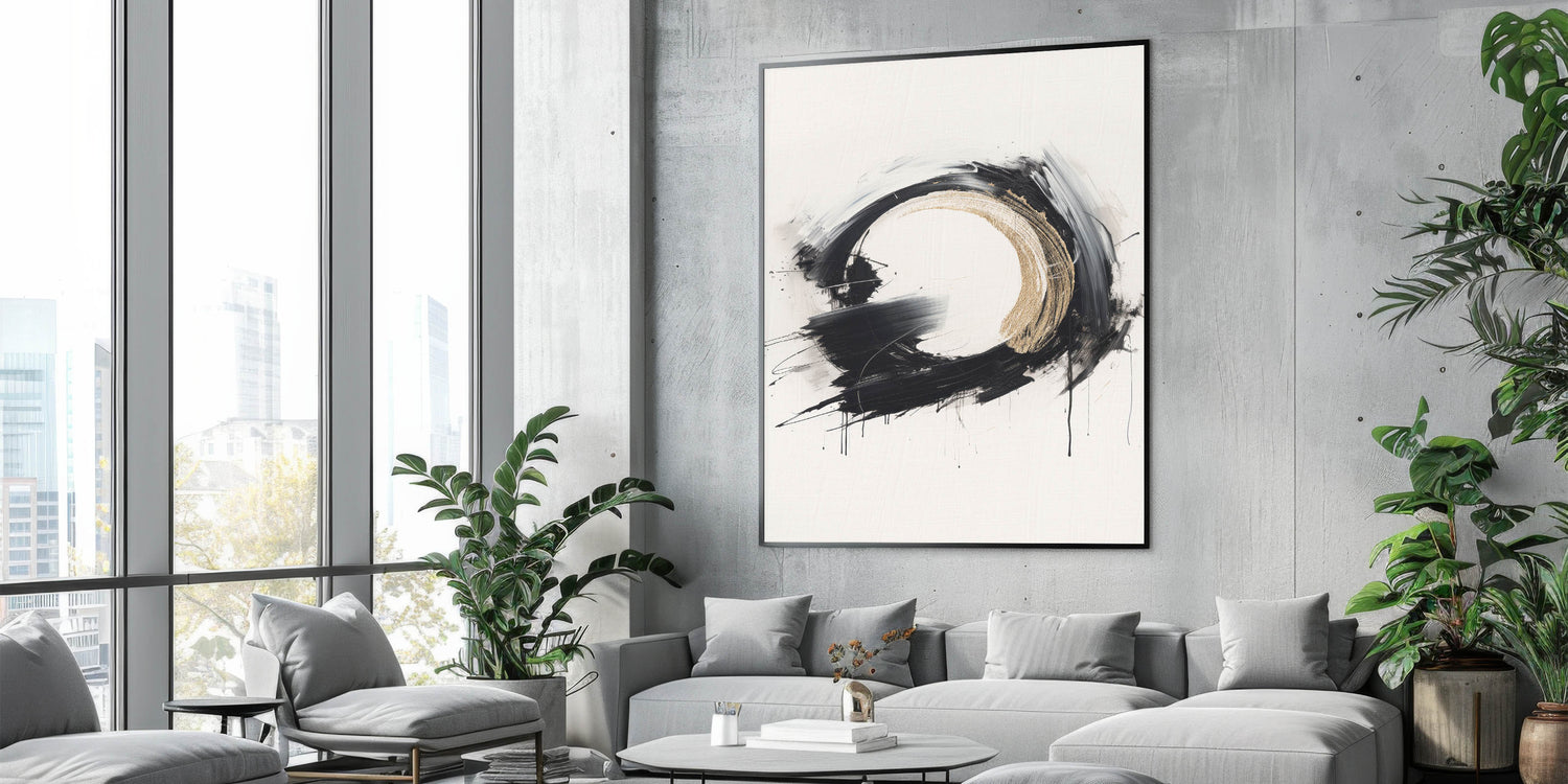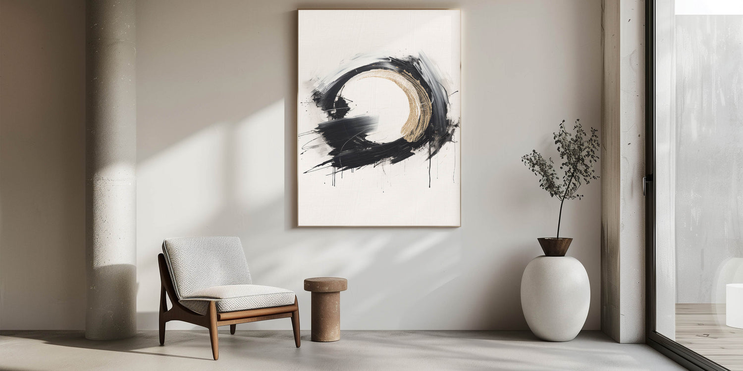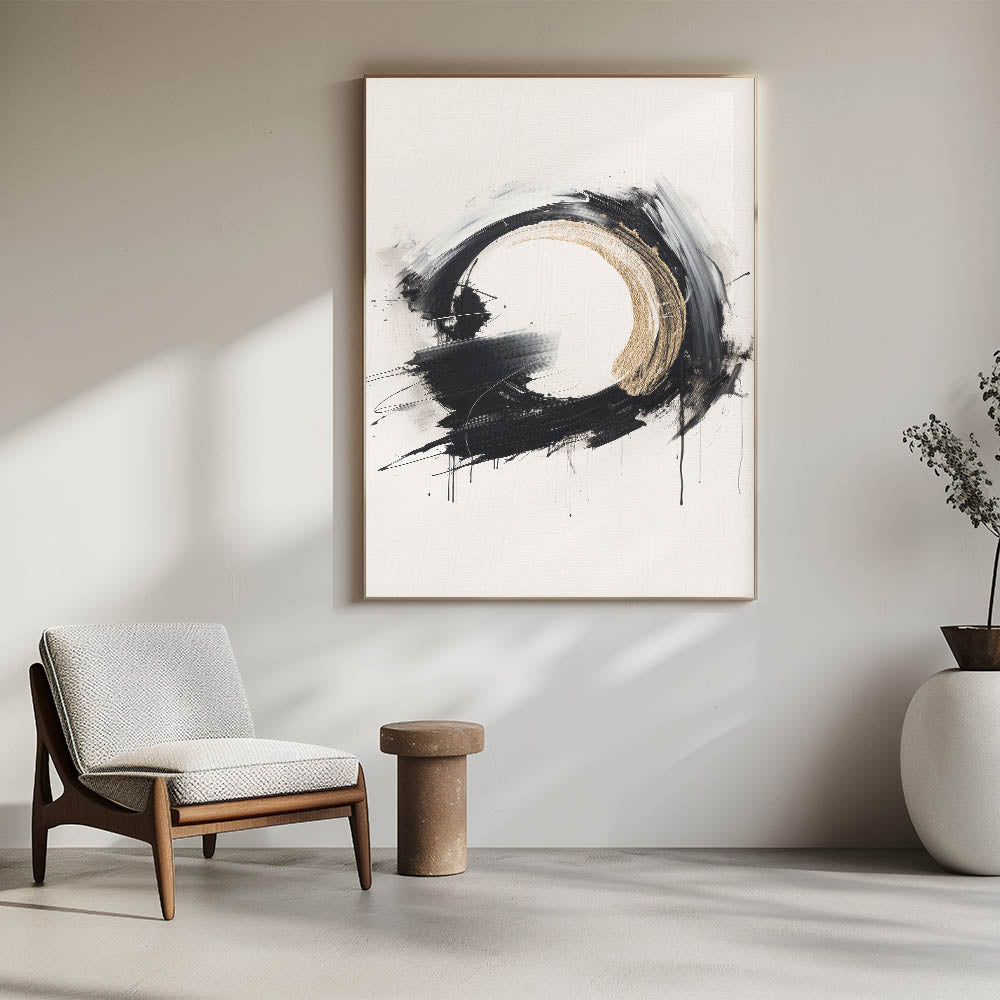 Modern Circular Abstract Art with Gold Accents - Bold Monochrome Decor
