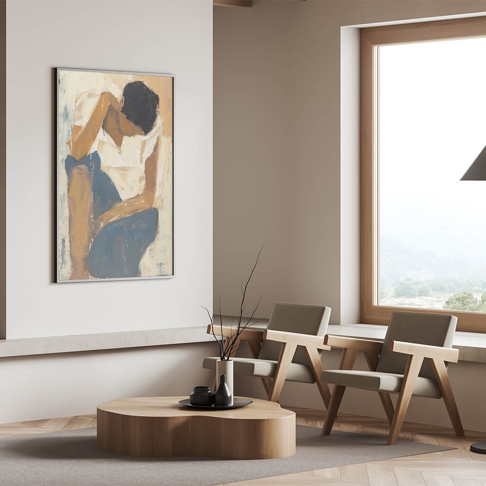 This stunning figurative canvas print is perfect for those who appreciate the fusion of contemporary art with emotional depth. Whether as a gift or a focal point in your home, this piece transforms any wall into a gallery of beautiful abstract human art.