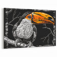 Make a bold statement with this striking Tropical Bird wall art, featuring a graphic illustration of a toucan with vivid orange and black details. The stark contrast between the bright orange beak and the deep black background creates a powerful visual impact, making this piece a standout addition to any room. Perfect for those who appreciate modern, edgy art, this artwork is available in various formats, including stretched canvas, framed prints, and acrylic glass.