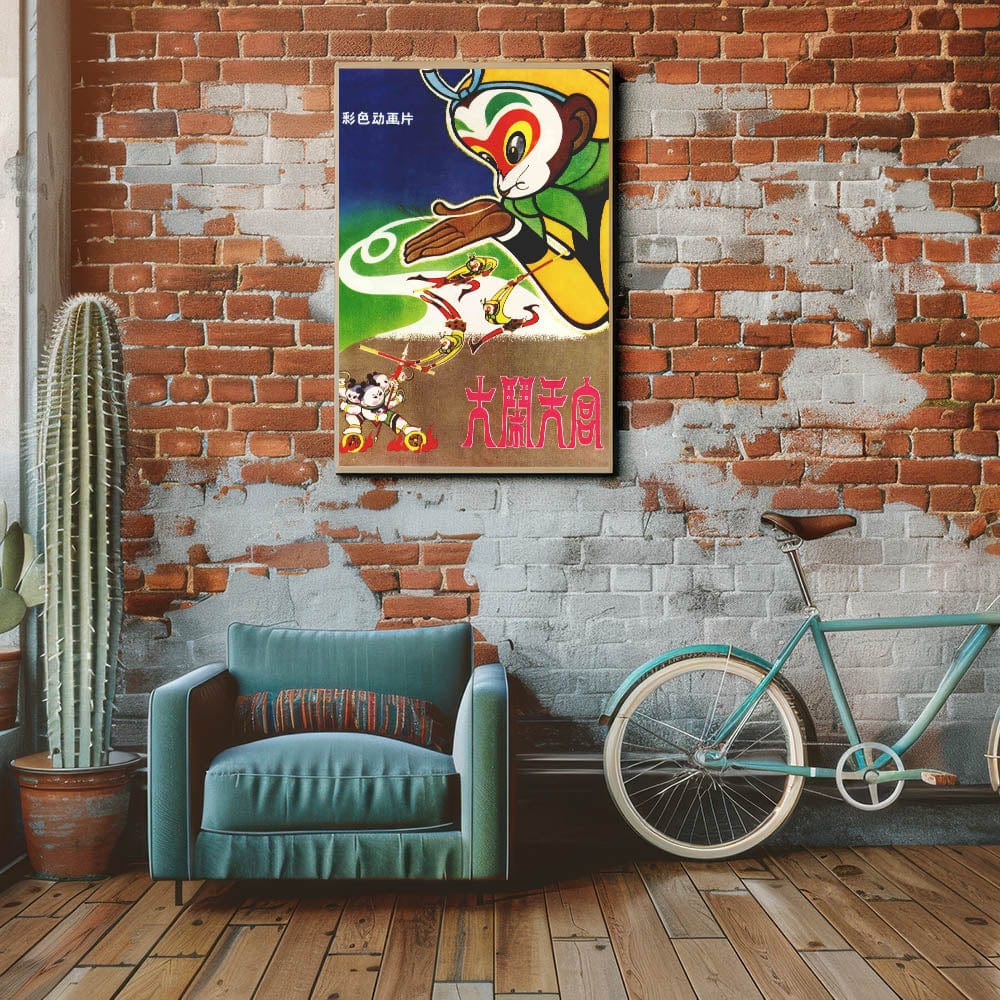 Celebrate the beauty of classic Chinese animation with this Havoc in Heaven vintage movie poster from the 1960s. Inspired by the legendary Monkey King (Sun Wukong) and Journey to the West, this classic 60s movie print showcases bold colors, dynamic action, and intricate character designs from one of China’s most influential animated films. This retro cinema art from the 1960s is a must-have for animation lovers, collectors of vintage Asian film posters, and fans of traditional folklore.