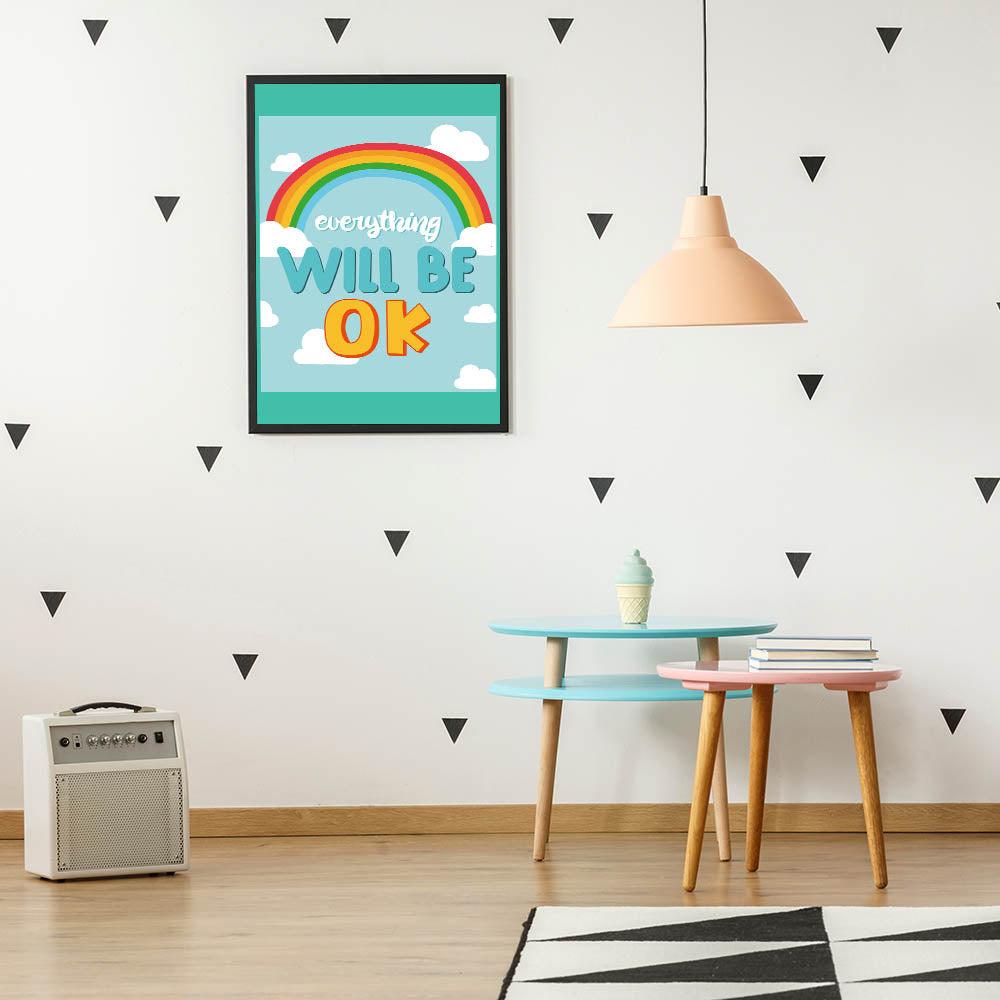 Add a touch of positivity and encouragement to any space with this Children’s Learning Art Print featuring a vibrant Everything Will Be OK design! This Educational Art for Kids’ Rooms is perfect for creating a cheerful and reassuring environment in nurseries, playrooms, classrooms, and homeschool spaces. The colorful rainbow and uplifting message make it a great addition to any child’s learning area, helping to inspire confidence and optimism.