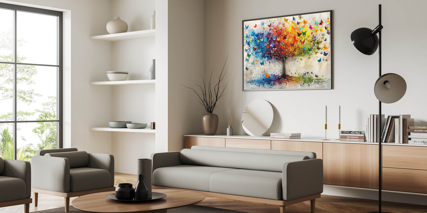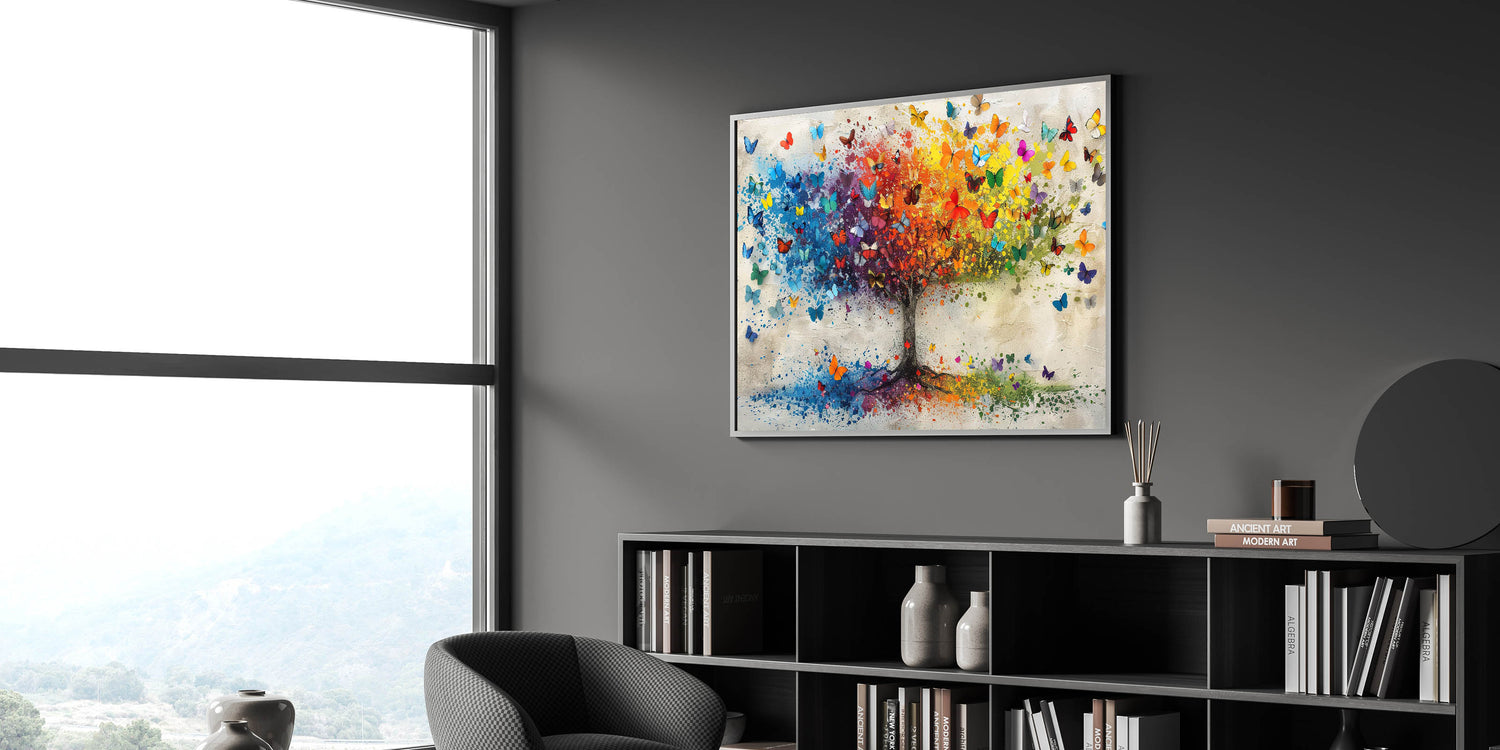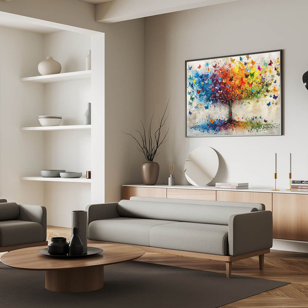 Colorful Butterfly Tree Wall Art – Modern Canvas & Framed Print