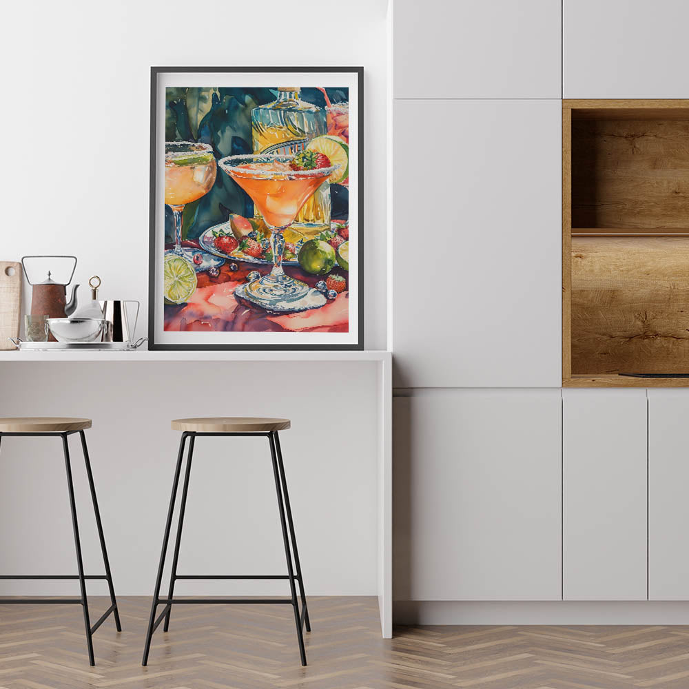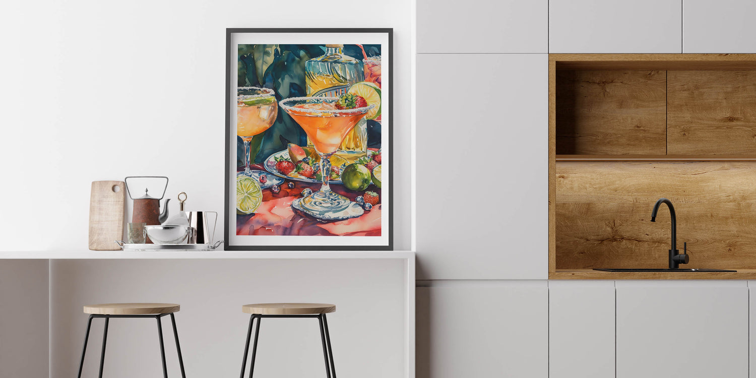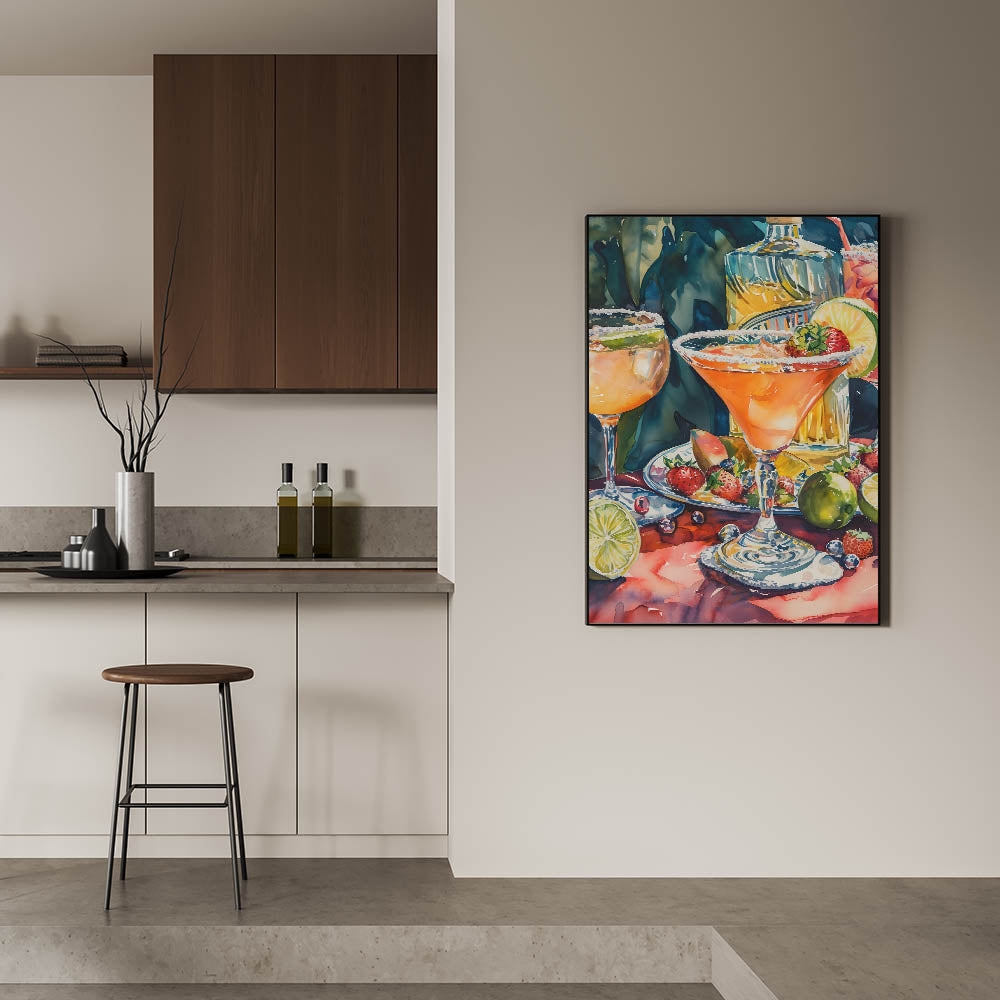 This drink-themed art print is a must-have for margarita lovers, mixology enthusiasts, and those who appreciate bold and vibrant art. Whether displayed in a bar, dining area, or lounge, it adds warmth and a festive atmosphere.