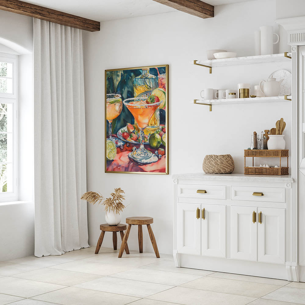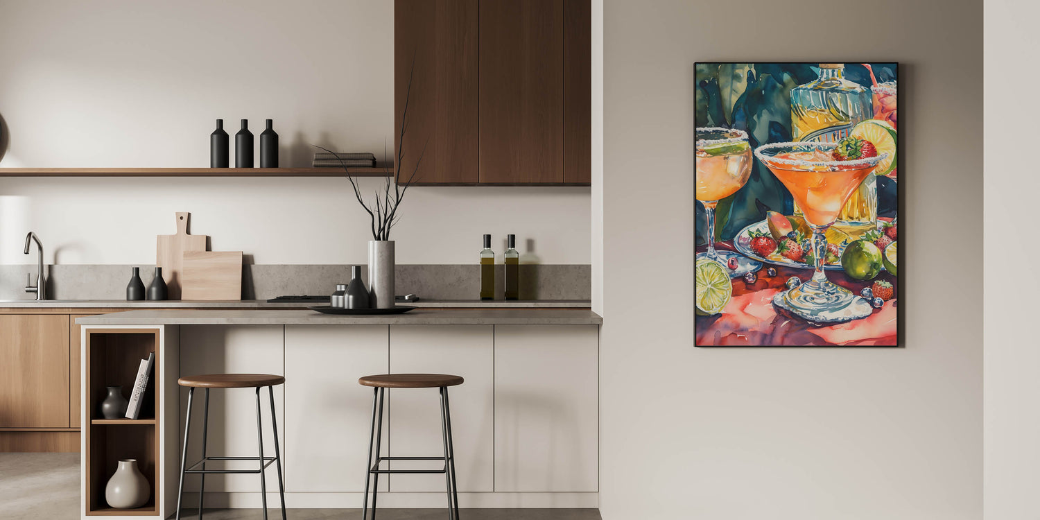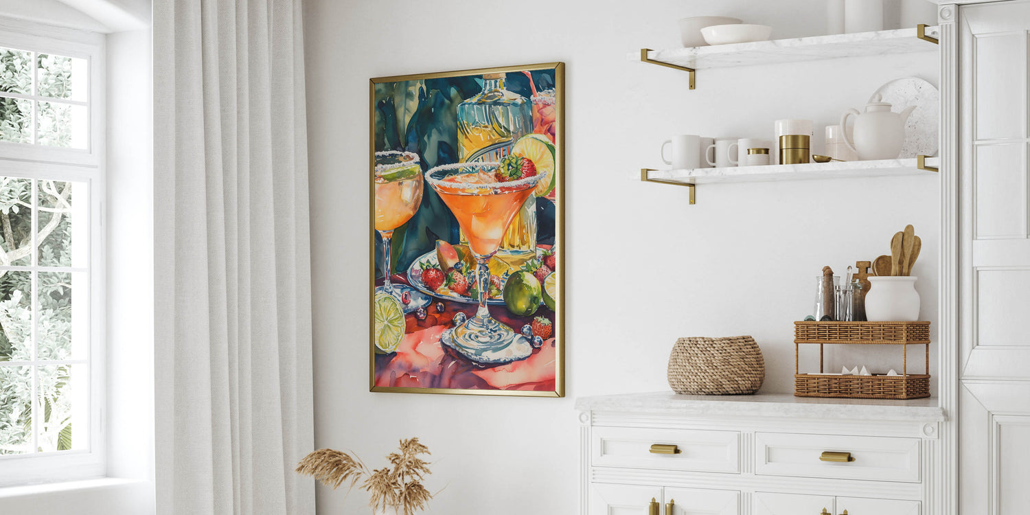 This drink-themed art print is a must-have for margarita lovers, mixology enthusiasts, and those who appreciate bold and vibrant art. Whether displayed in a bar, dining area, or lounge, it adds warmth and a festive atmosphere.