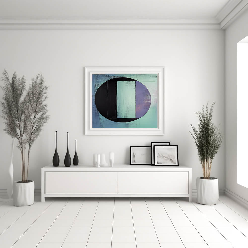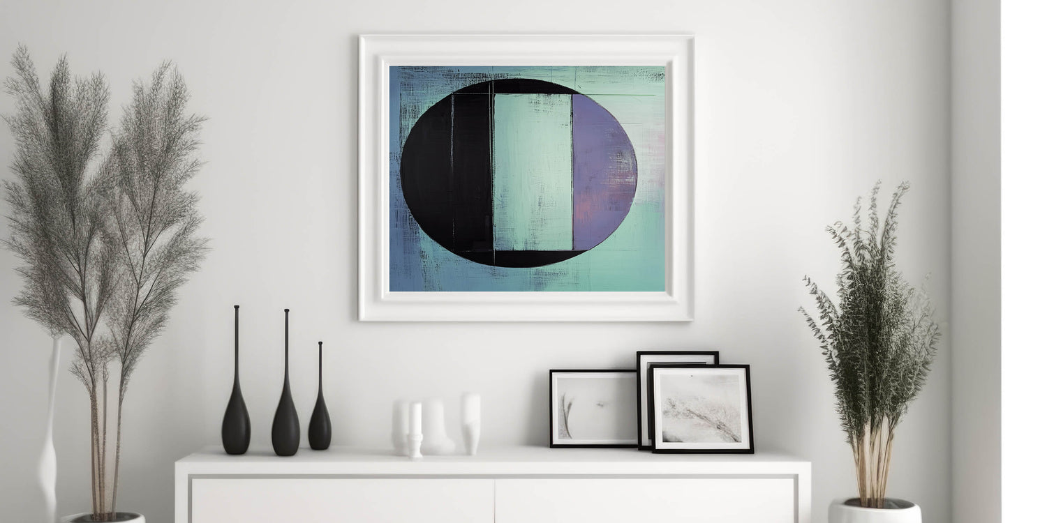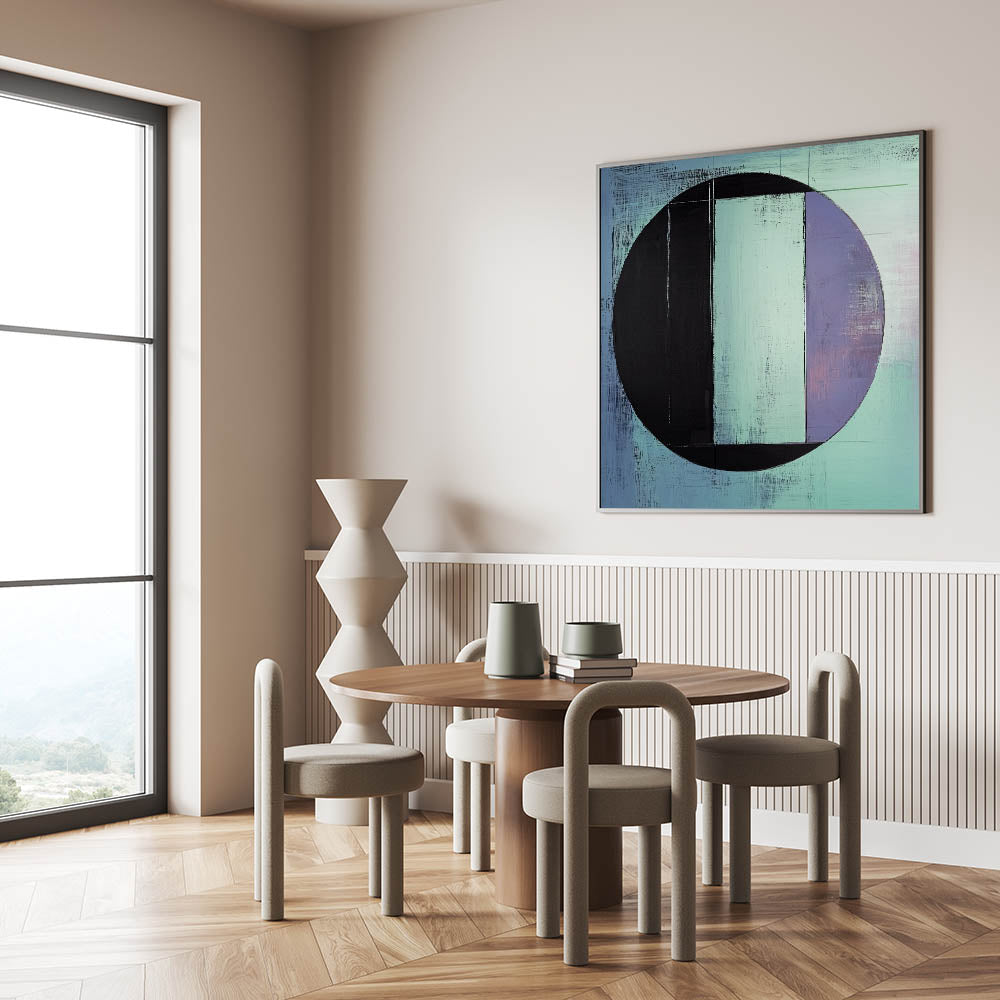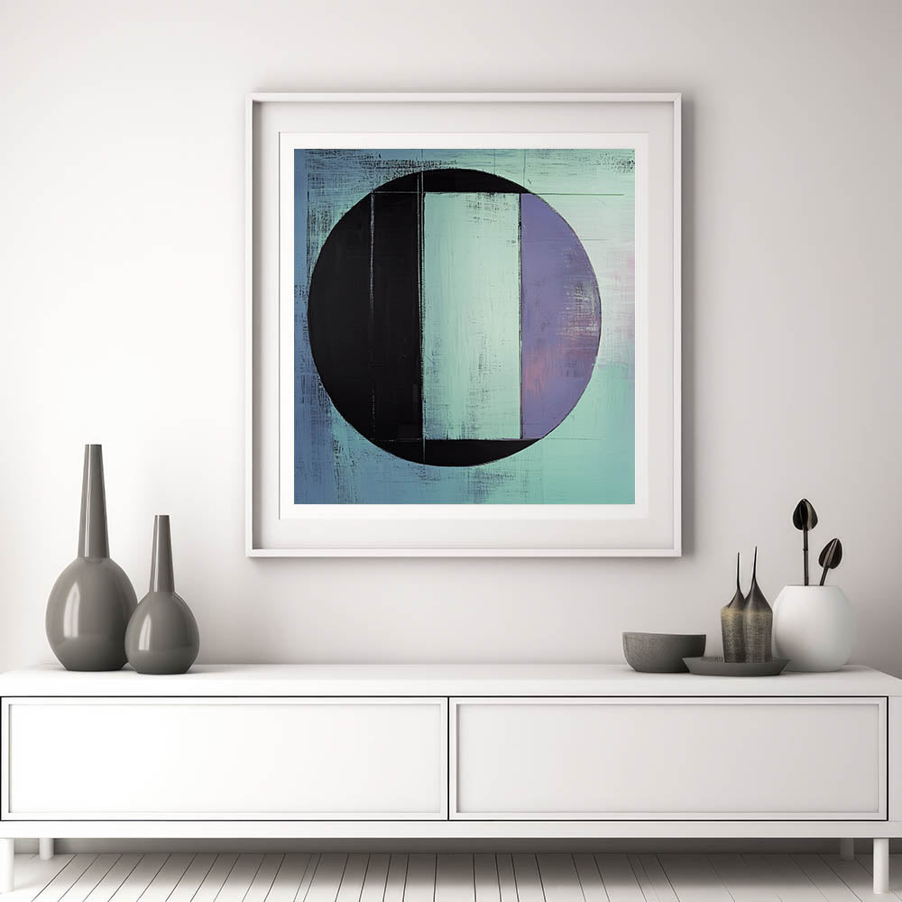 Introduce a bold and contemporary touch to your space with this modern wall art, featuring a striking blend of teal, black, and purple geometric shapes. This living room wall art is a perfect fusion of artistic depth and structured design, creating a visually captivating statement. Whether displayed as canvas wall art or framed wall art, this piece enhances modern living room decor with its bold contrast and sleek aesthetic.