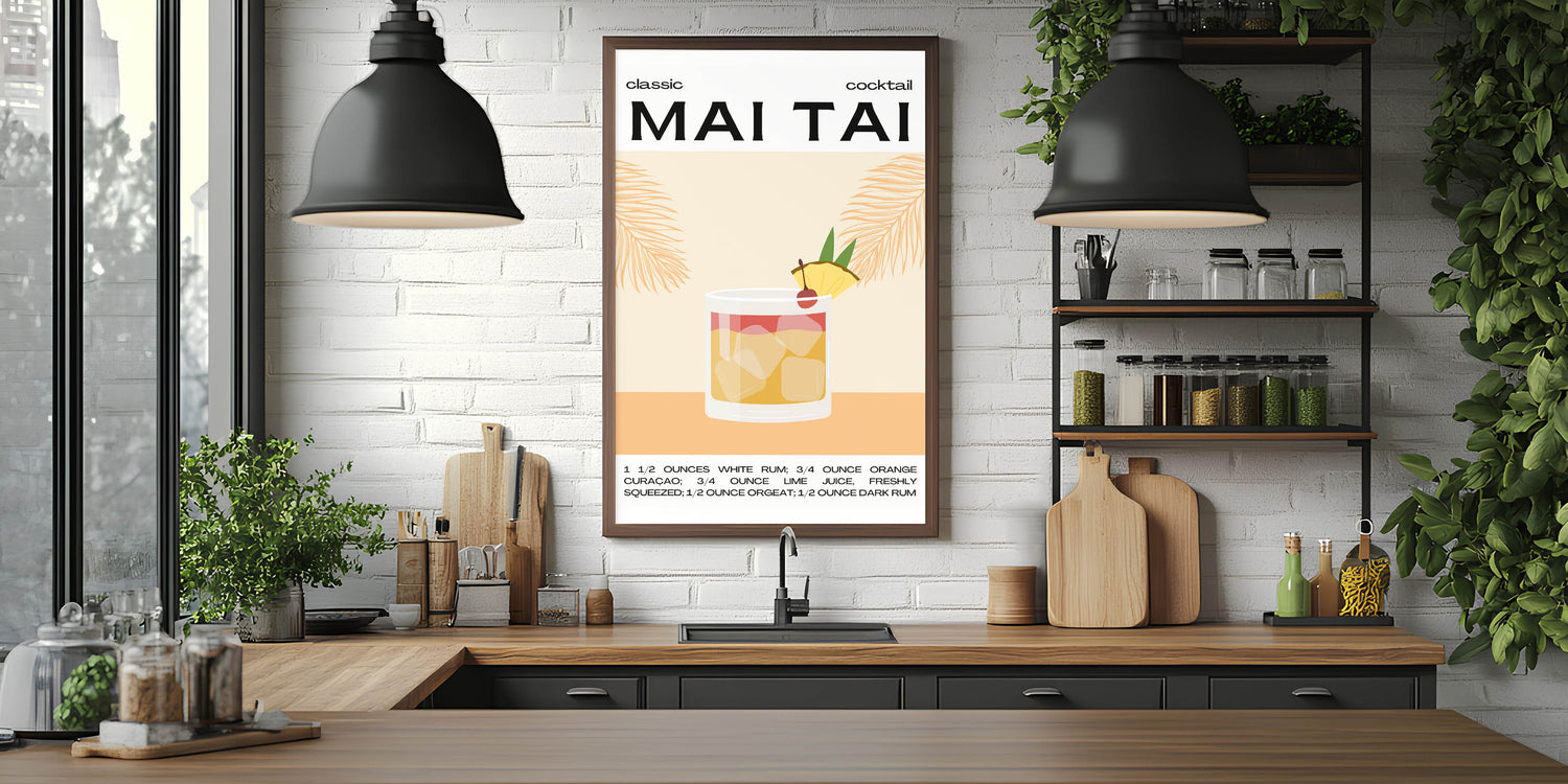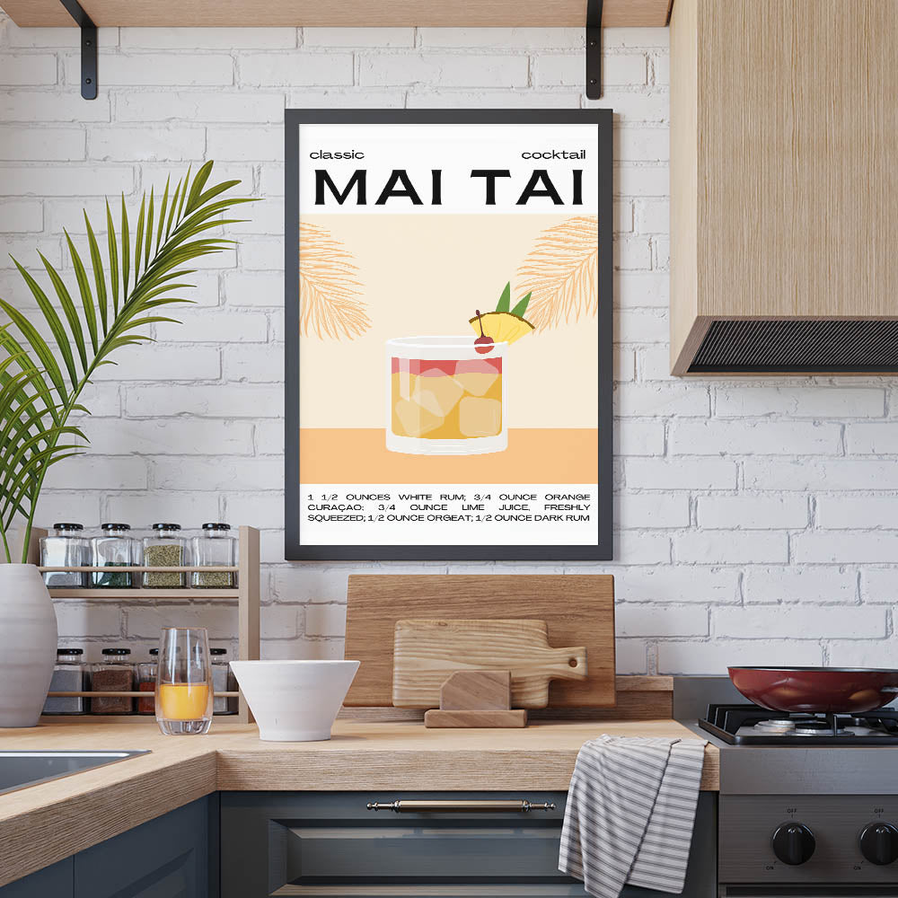 Mai Tai Cocktail Recipe Wall Art - Tropical Bar and Kitchen Decor