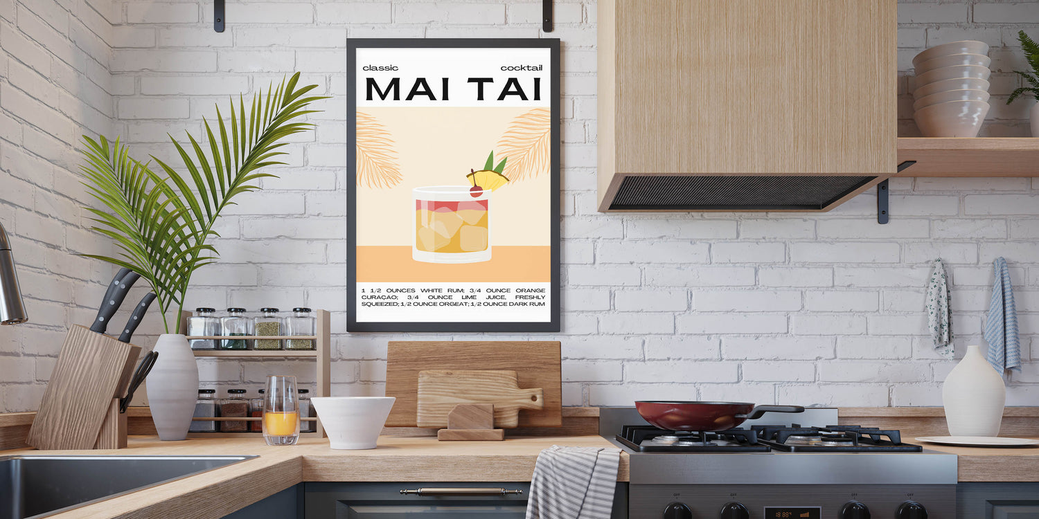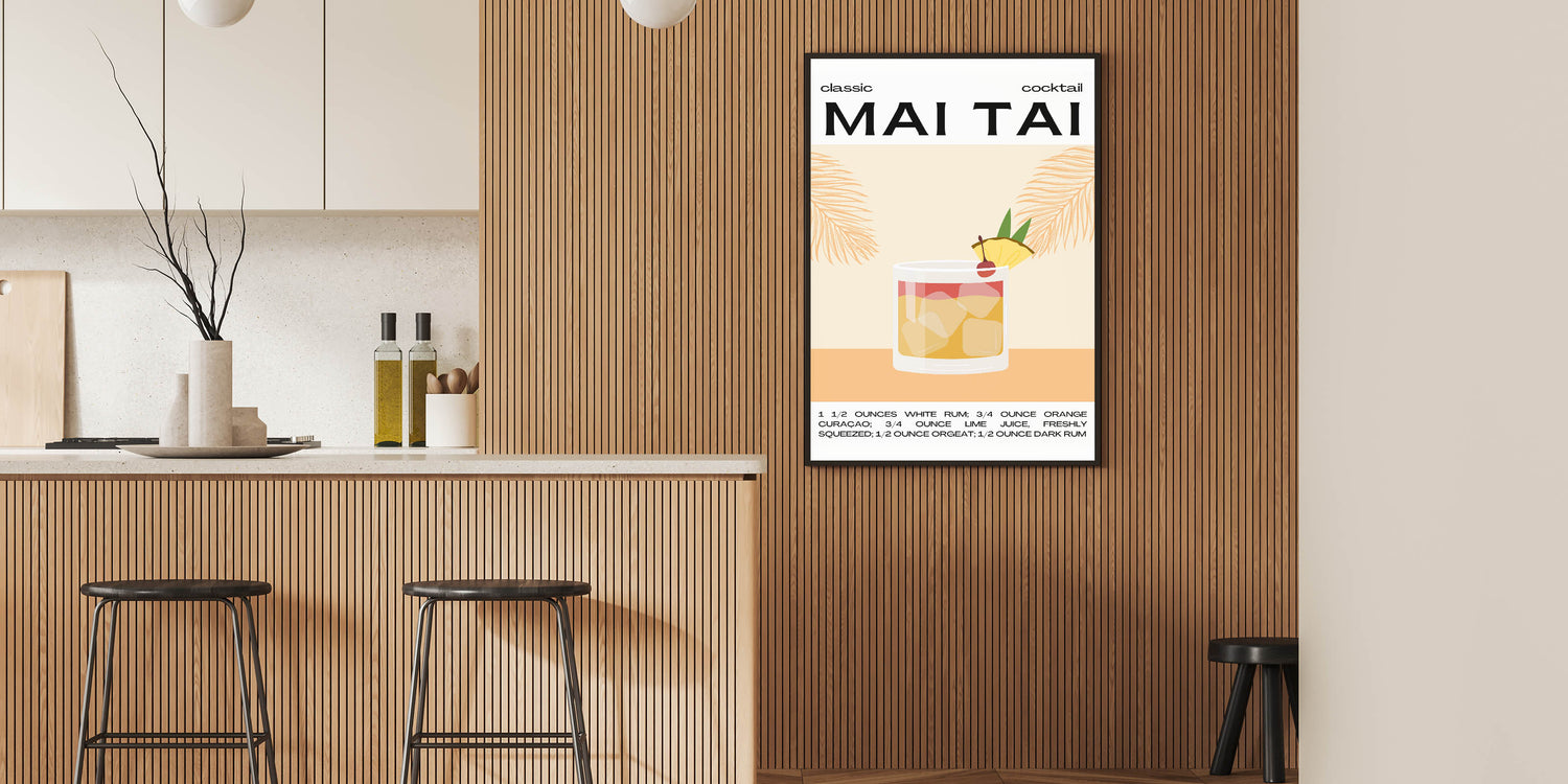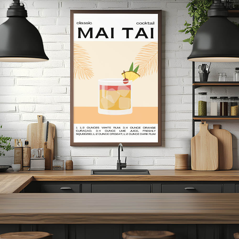 This cocktail art print brings a laid-back and festive ambiance to any space, making it a great addition for entertaining areas. Whether you’re a Mai Tai fan or simply love tropical vibes, this artwork is a must-have.