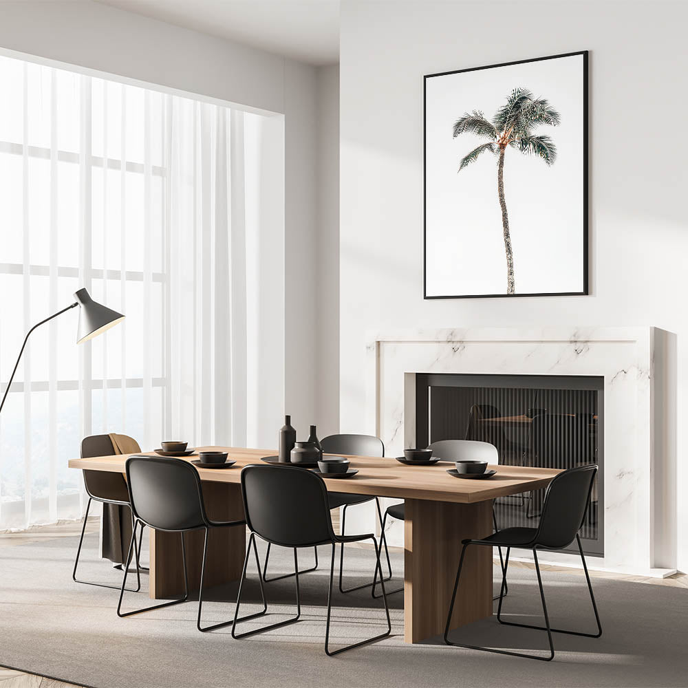 Elevate your space with the clean and calming beauty of this Tropical Wall Art featuring a tall, elegant palm tree set against a minimalist white sky. Perfect for adding a touch of bright summer colors and nature-inspired summer art to your modern or tropical-themed decor.