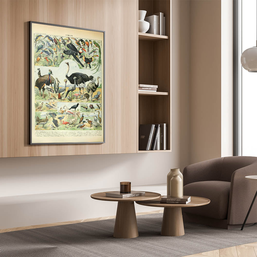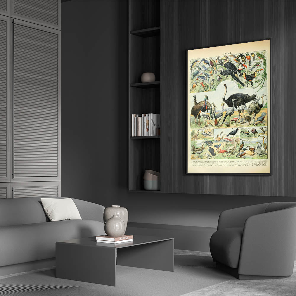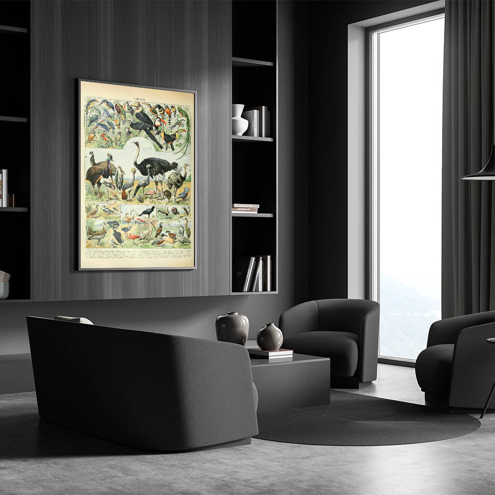 Enhance your space with this detailed animal artwork, blending nature-inspired illustrations with scientific precision. Shop now and bring the beauty of exotic birds into your home!