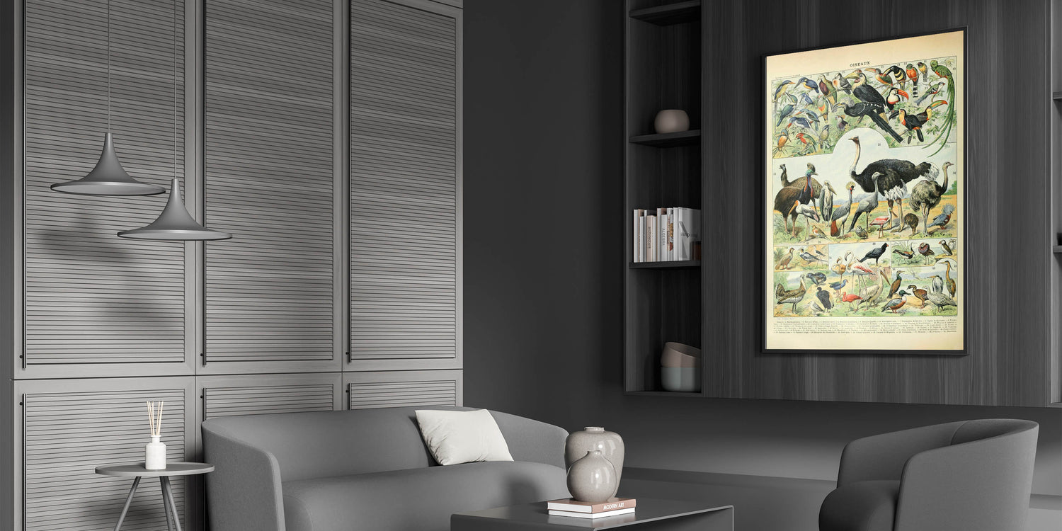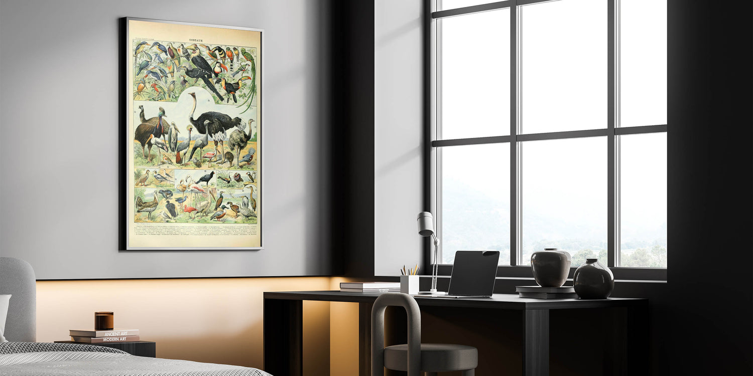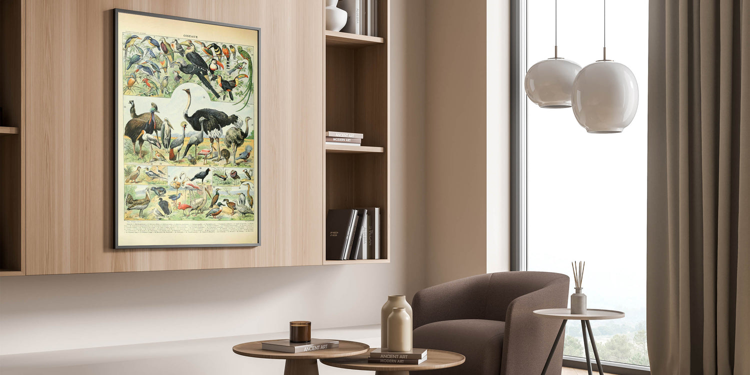 Enhance your space with this detailed animal artwork, blending nature-inspired illustrations with scientific precision. Shop now and bring the beauty of exotic birds into your home!