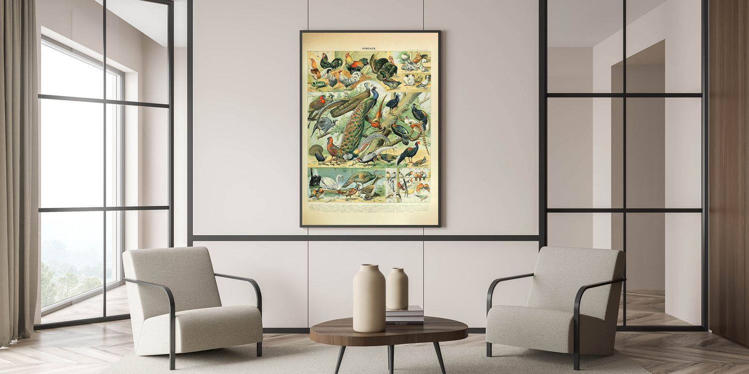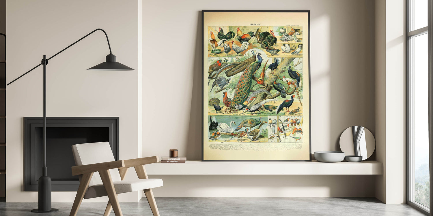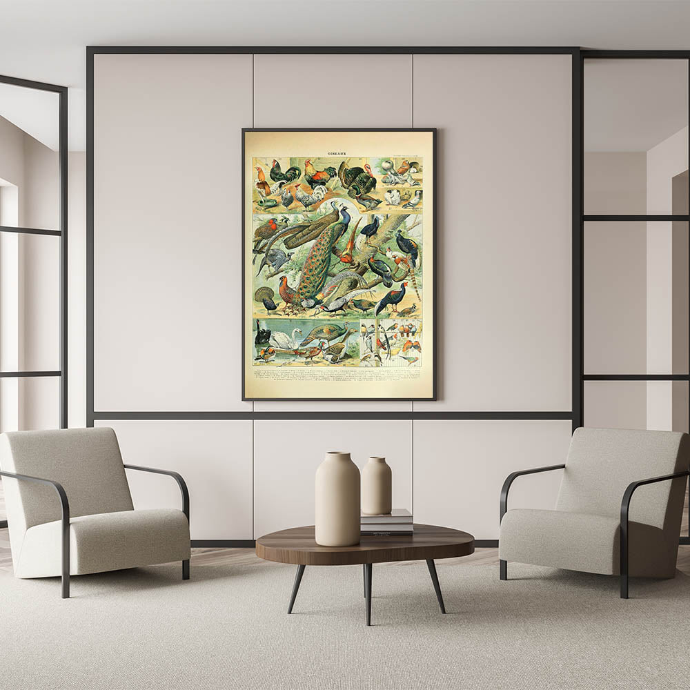 Enhance your space with this detailed animal artwork, blending nature-inspired illustrations with scientific precision. Shop now and bring the beauty of exotic birds into your home!