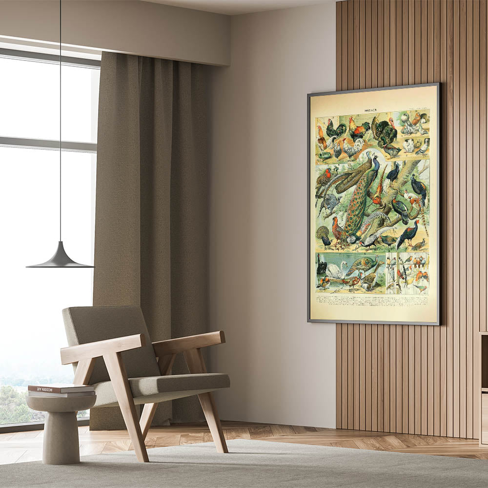 Add a touch of elegance to your space with this stunning vintage animal art print, featuring an intricately detailed scientific illustration of peacocks, pheasants, swans, and more. Showcasing the majestic beauty of long-feathered birds, this handcrafted animal illustration captures the grace and vibrancy of nature. Whether you’re a birdwatcher, nature enthusiast, or art lover, this high-quality art print brings a unique and classic charm to any setting.