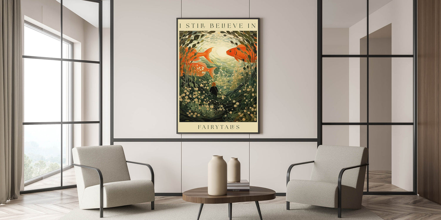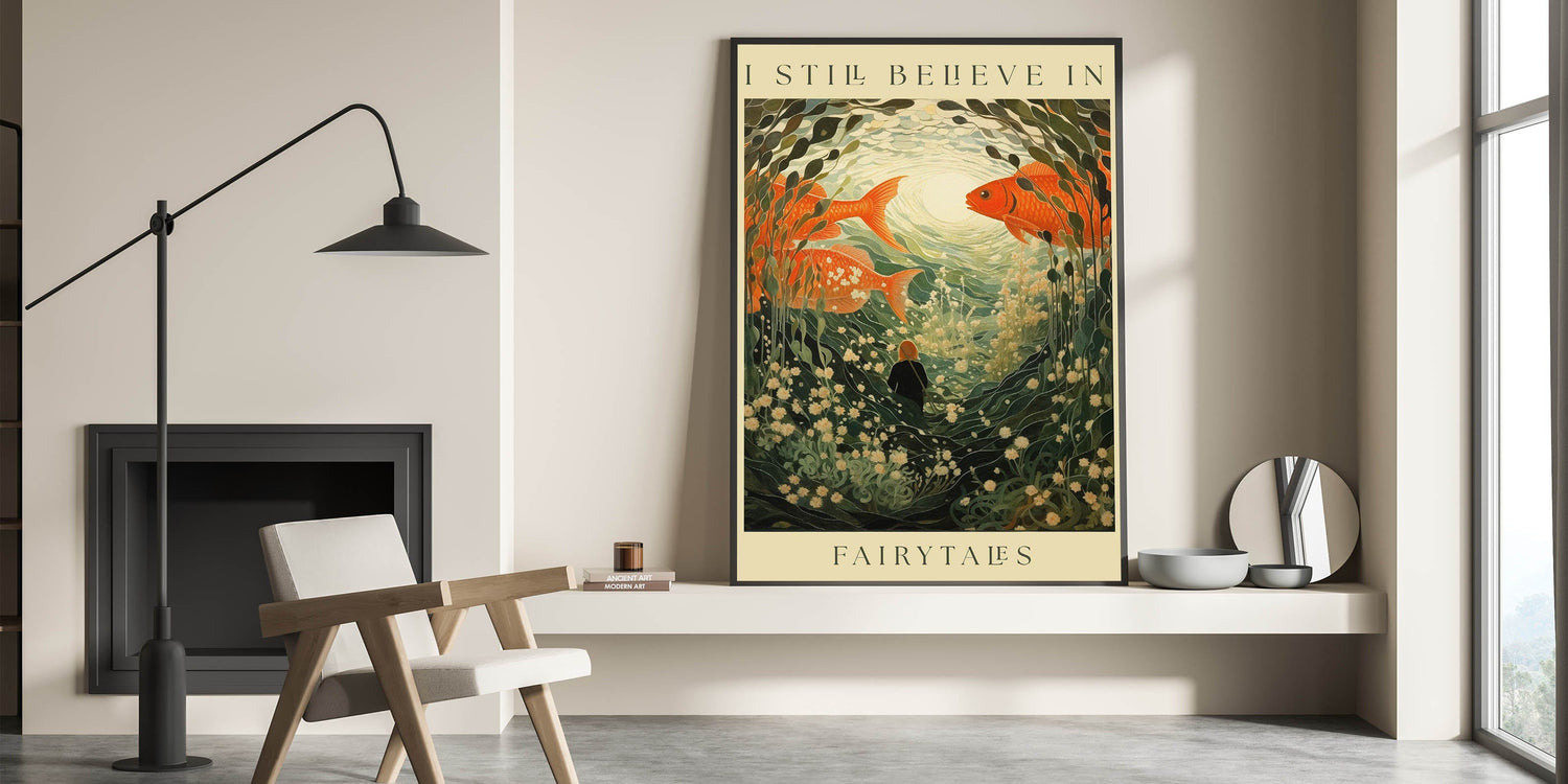 This magical fairytale print brings nature's wonders to life, combining botanical elements with surreal beauty. It's a perfect way to add enchantment to your home or office space.