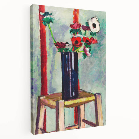 • Stretched canvas wall art showcasing abstract florals in vibrant colors, displayed from a side view to emphasize its depth and texture, perfect for home decor.