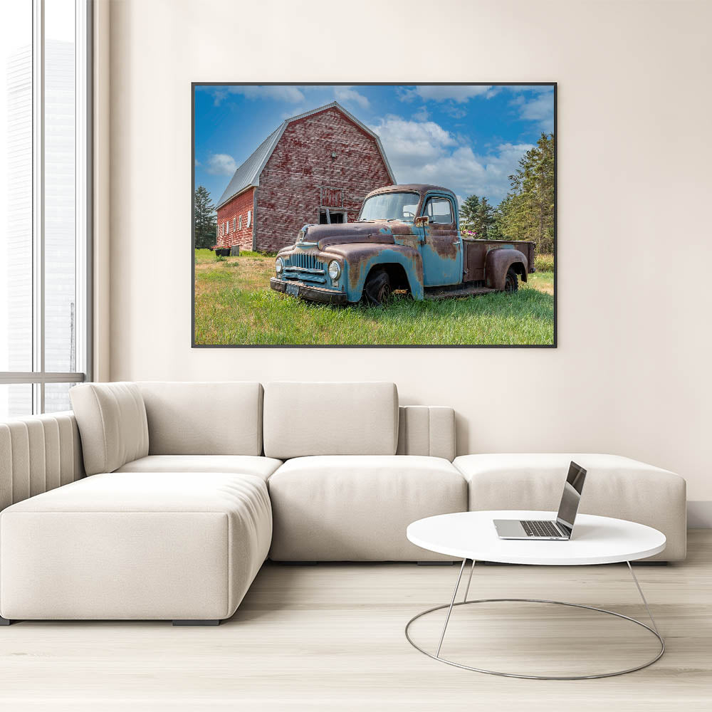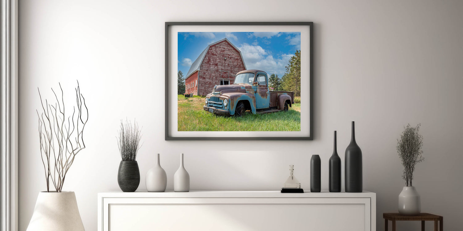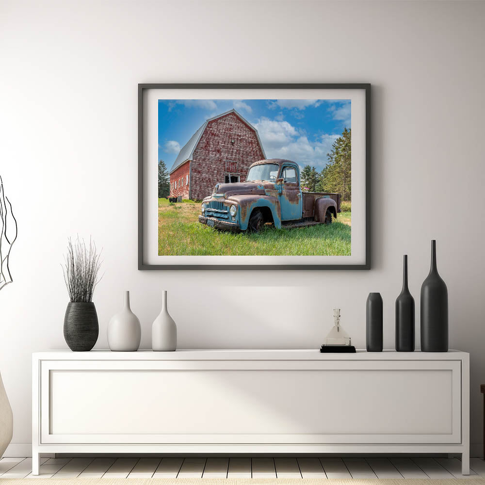 This piece is more than just decor—it’s a snapshot of history and a tribute to the simplicity of farm life. Whether you’re a lover of vintage trucks, rustic decor, or simply appreciate the charm of the countryside, this print will add warmth and character to your space. Display it to bring a bit of the country into your home.
