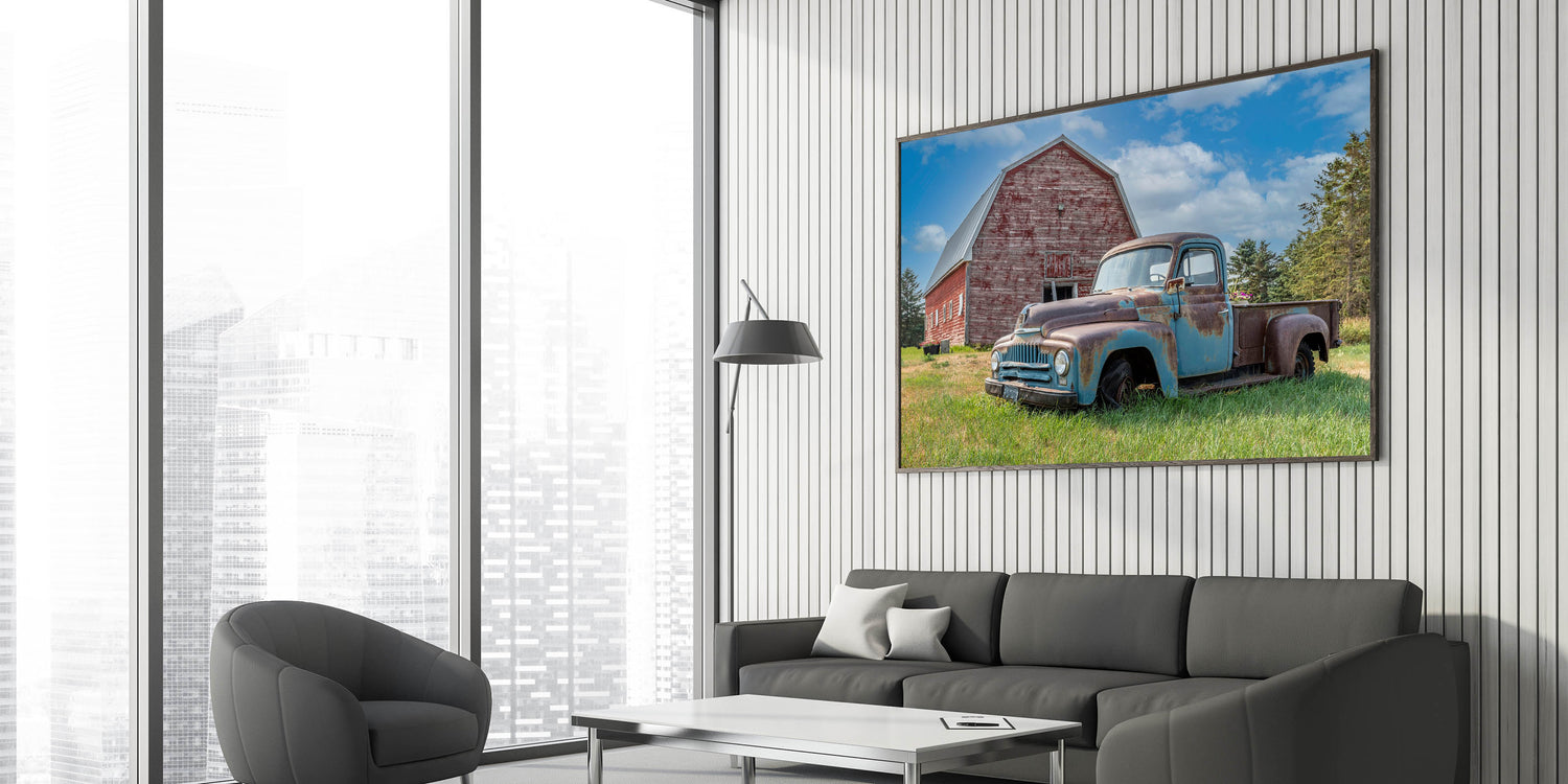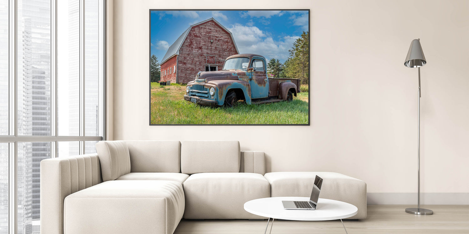 Rustic Farm Truck and Barn - Vintage Country Truck Wall Art Print