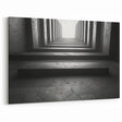 Step into the world of abstract architecture with this striking concrete tunnel artwork. Featuring a series of geometric steps leading into a luminous void, this piece embodies the raw elegance of industrial design. The dark, textured surfaces combined with sharp, clean lines create a visually arresting composition, perfect for those who appreciate modern and minimalistic decor.