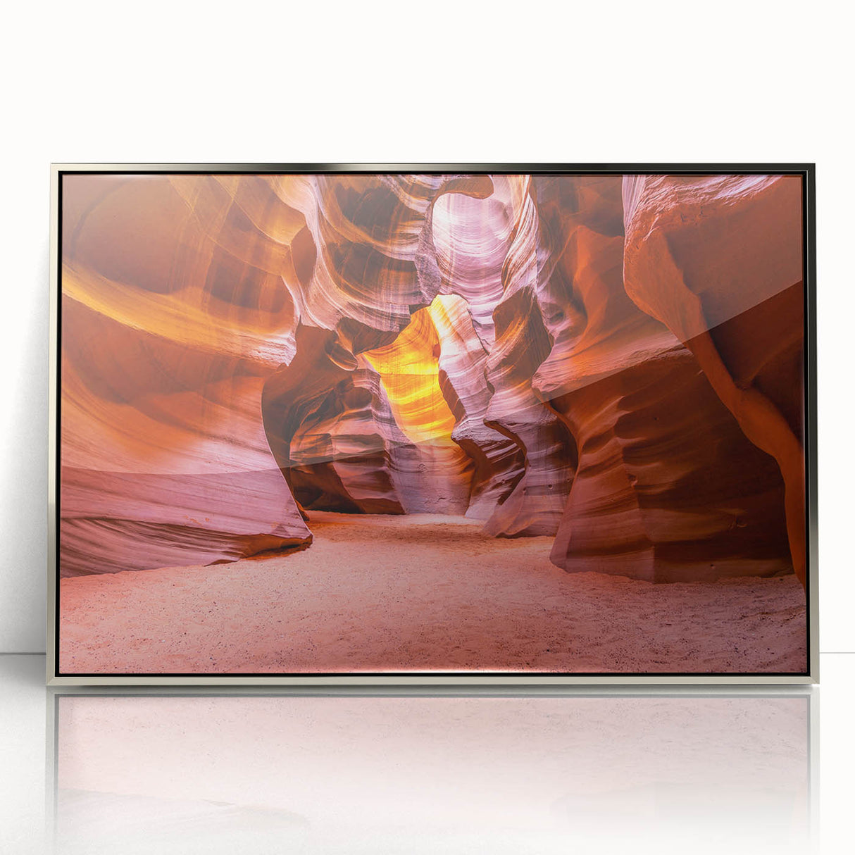 Add the beauty of the Arizona desert to your home with this unique Antelope Canyon canvas. The vivid colors and graceful curves of the canyon create a peaceful yet bold statement piece for any modern or rustic decor.