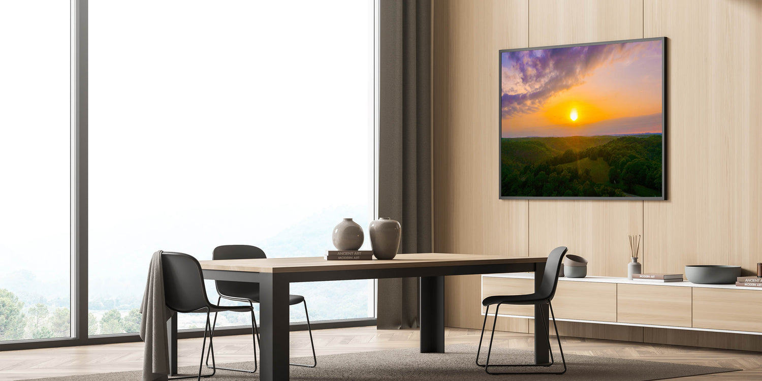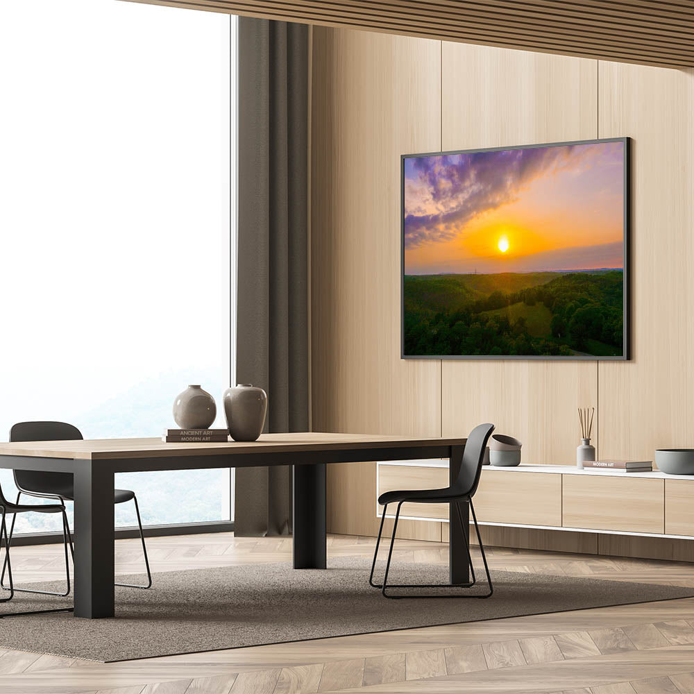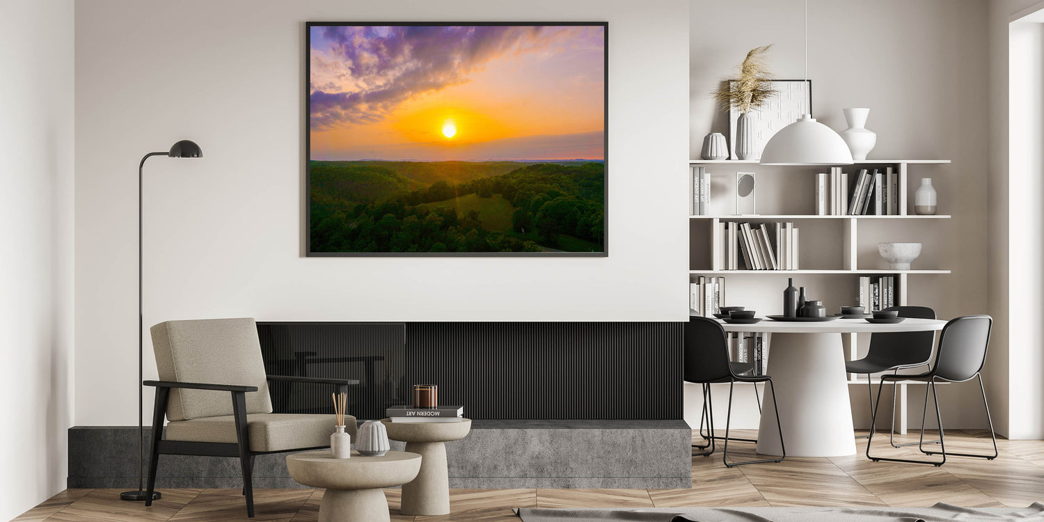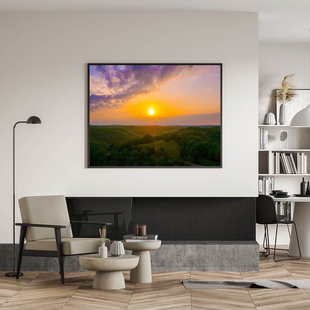 Whether you’re decorating your living room, office, or bedroom, this nature-inspired artwork will bring a touch of tranquility and natural beauty into your space. Celebrate the charm of Arkansas’s landscapes with this breathtaking sunset over the hills.