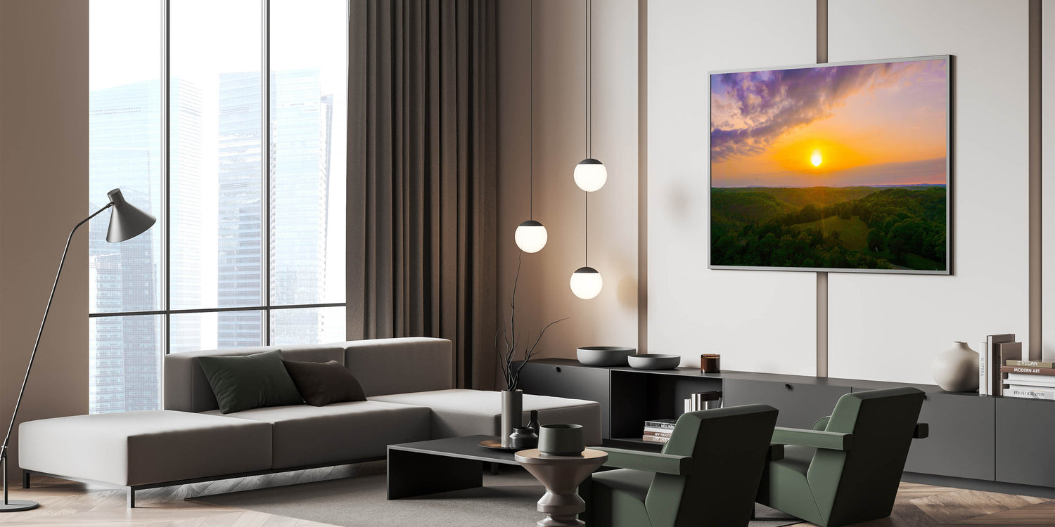 - High-quality acrylic glass and framed art prints for a modern, polished look