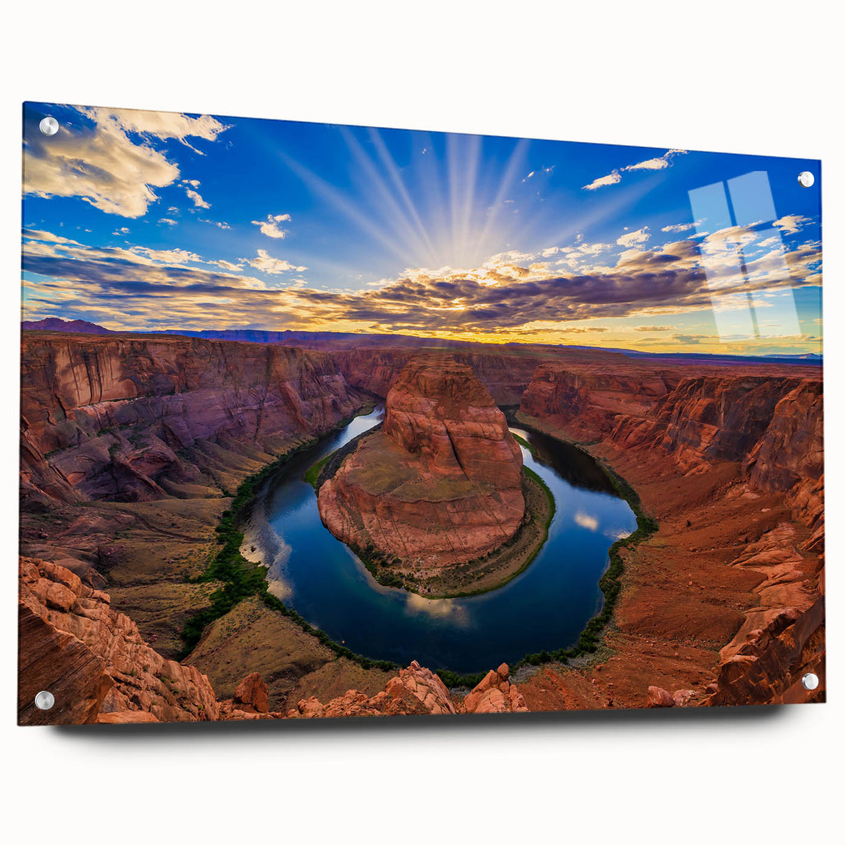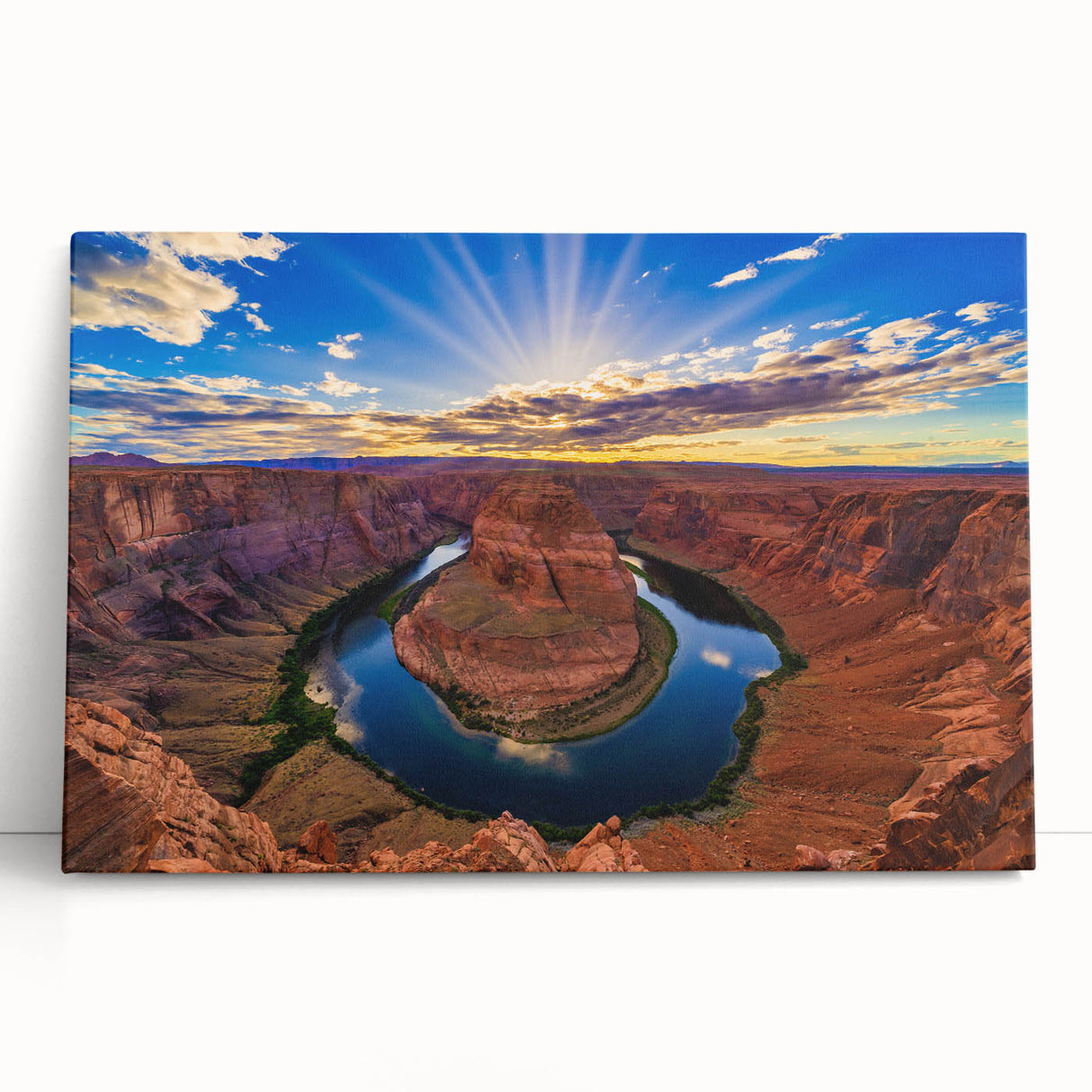 Stunning Arizona Landscape Painting - Horseshoe Bend Wall Art with Sun Rays