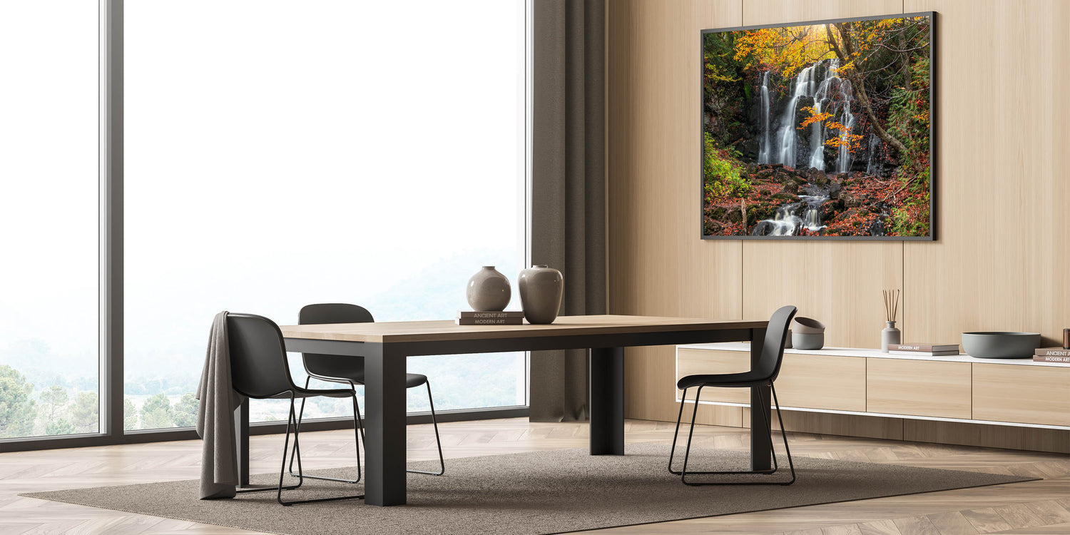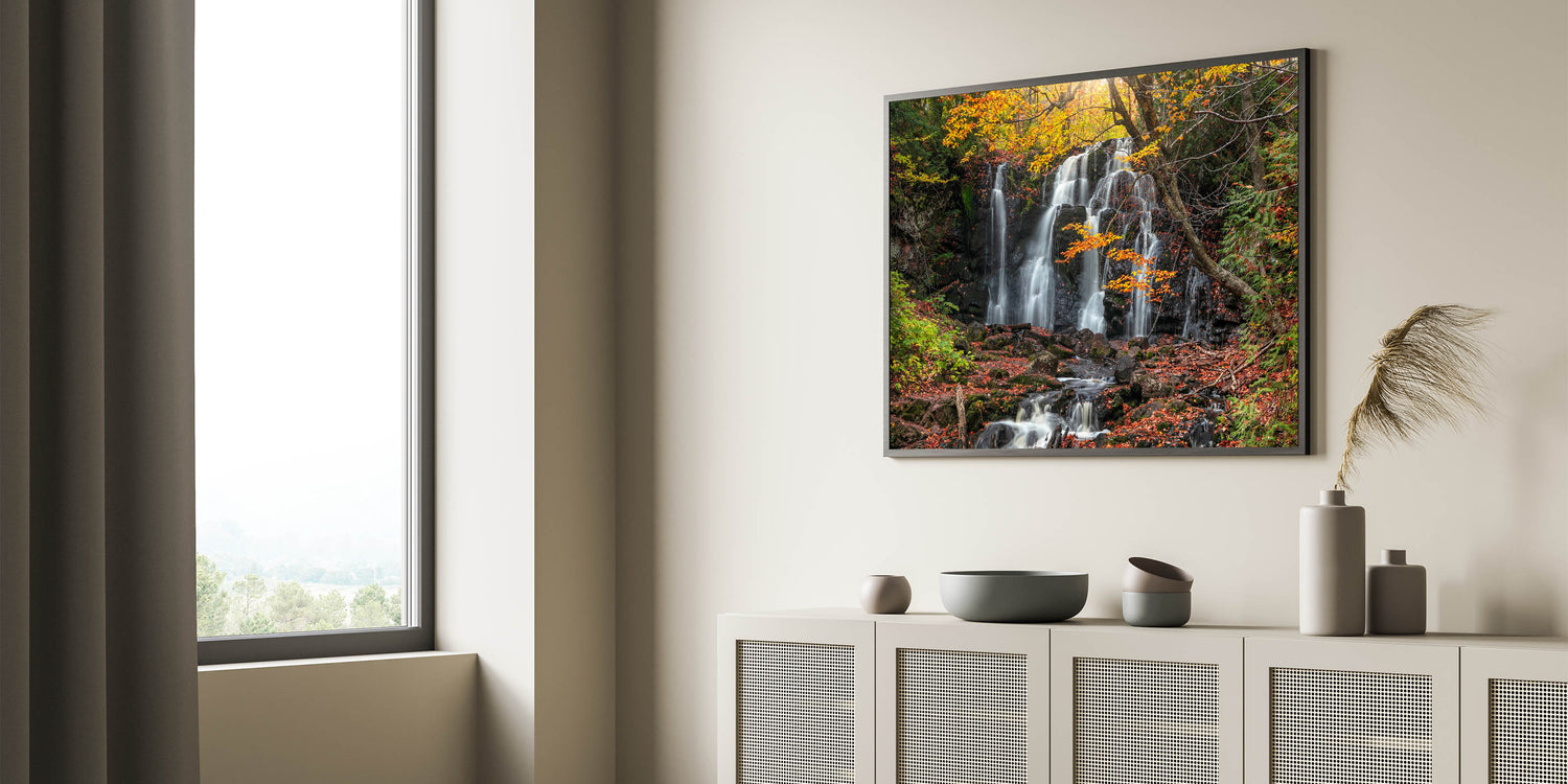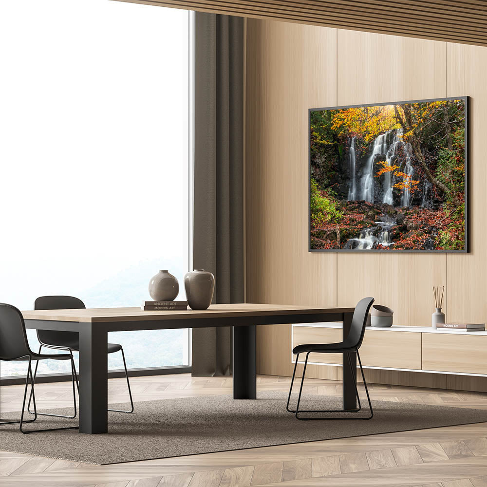 Embrace the enchanting beauty of Michigan's Upper Peninsula with this autumn waterfall landscape print. Part of our Upper Peninsula Wall Art Collection, this piece captures the vibrant fall colors as they frame a cascading waterfall, creating a serene and natural scene that brings the essence of the Upper Peninsula into any room. This unique Upper Peninsula art celebrates nature’s seasonal transformation and is perfect for those who love the colors and charm of Michigan’s landscapes.