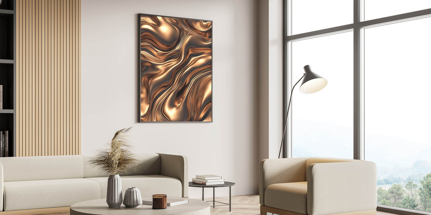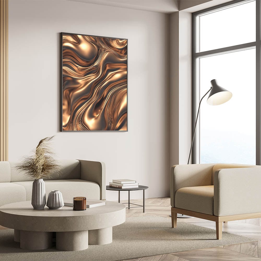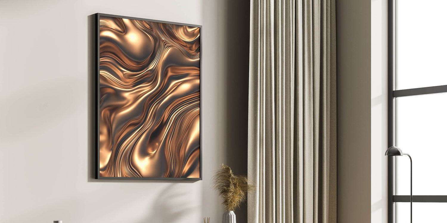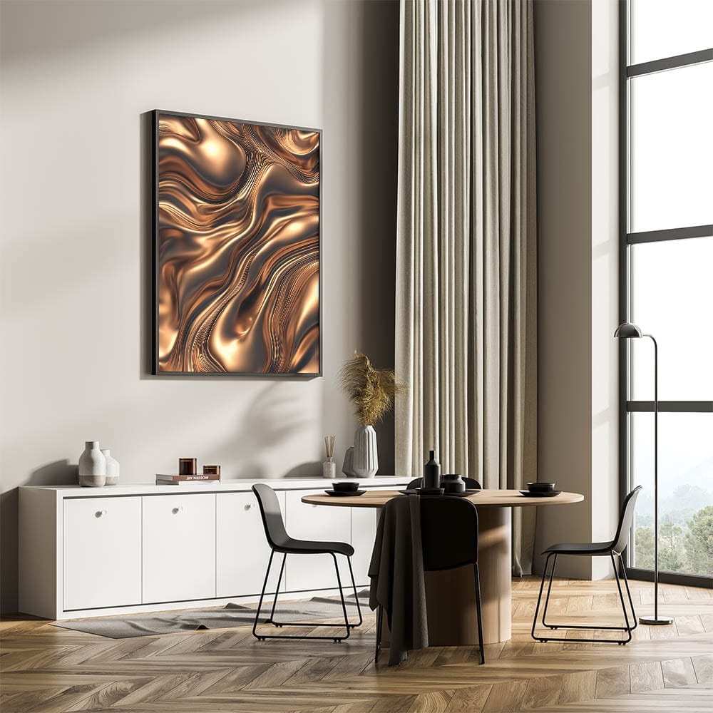 Add fluid elegance and rich bronze warmth to your walls—this abstract fluid canvas art makes a bold, timeless statement.