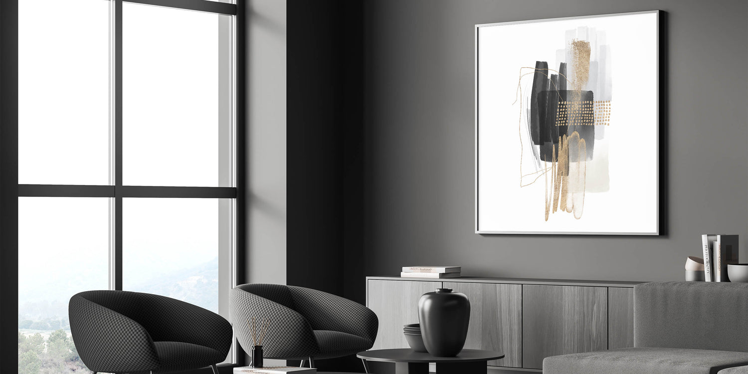 Abstract Geometric Framed Art – Minimalist Wall Art in Black & Gold