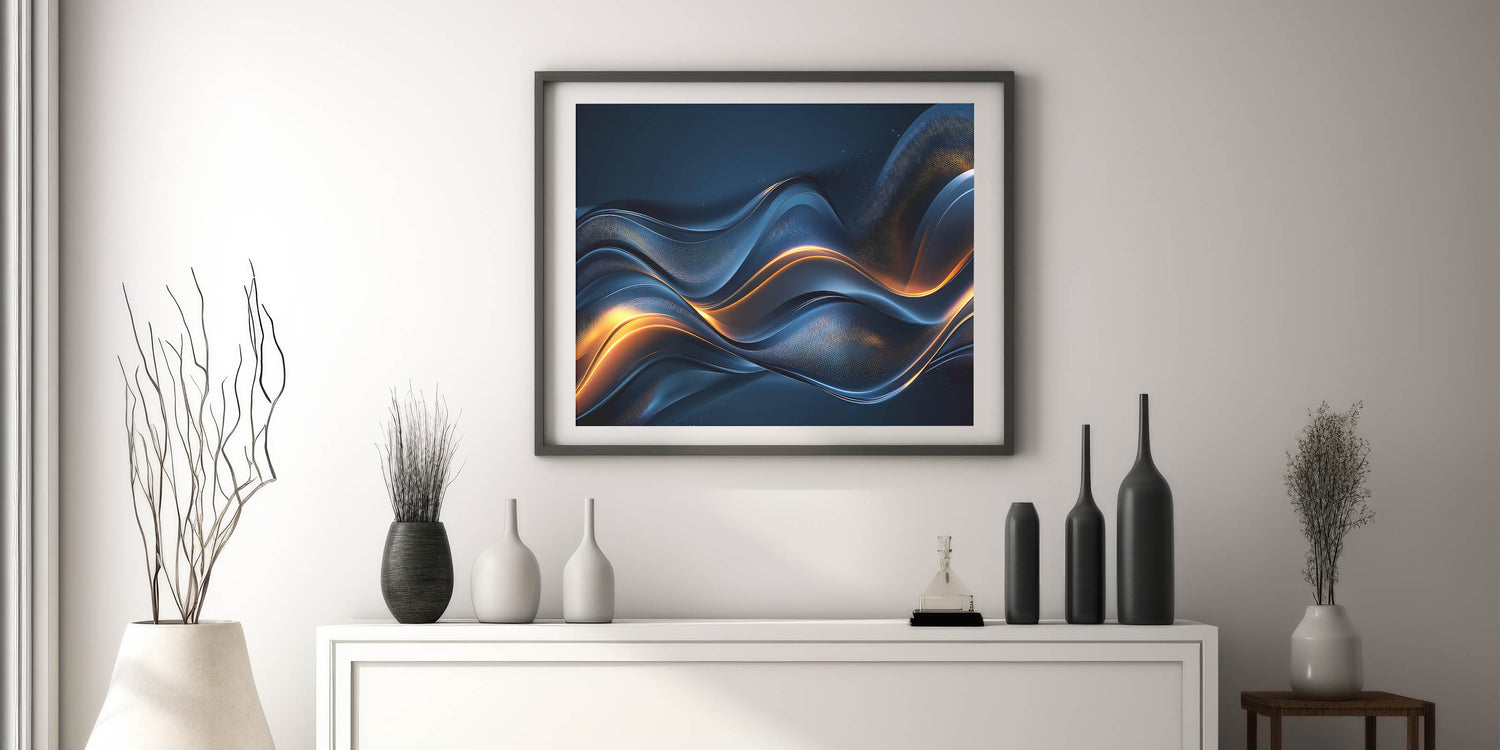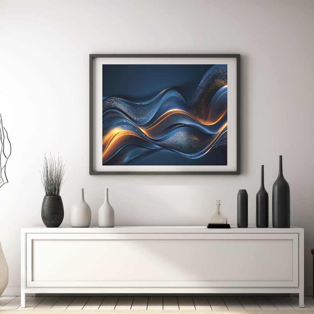 Colorful Abstract Wall Hangings – Navy & Gold Digital Wave Print
