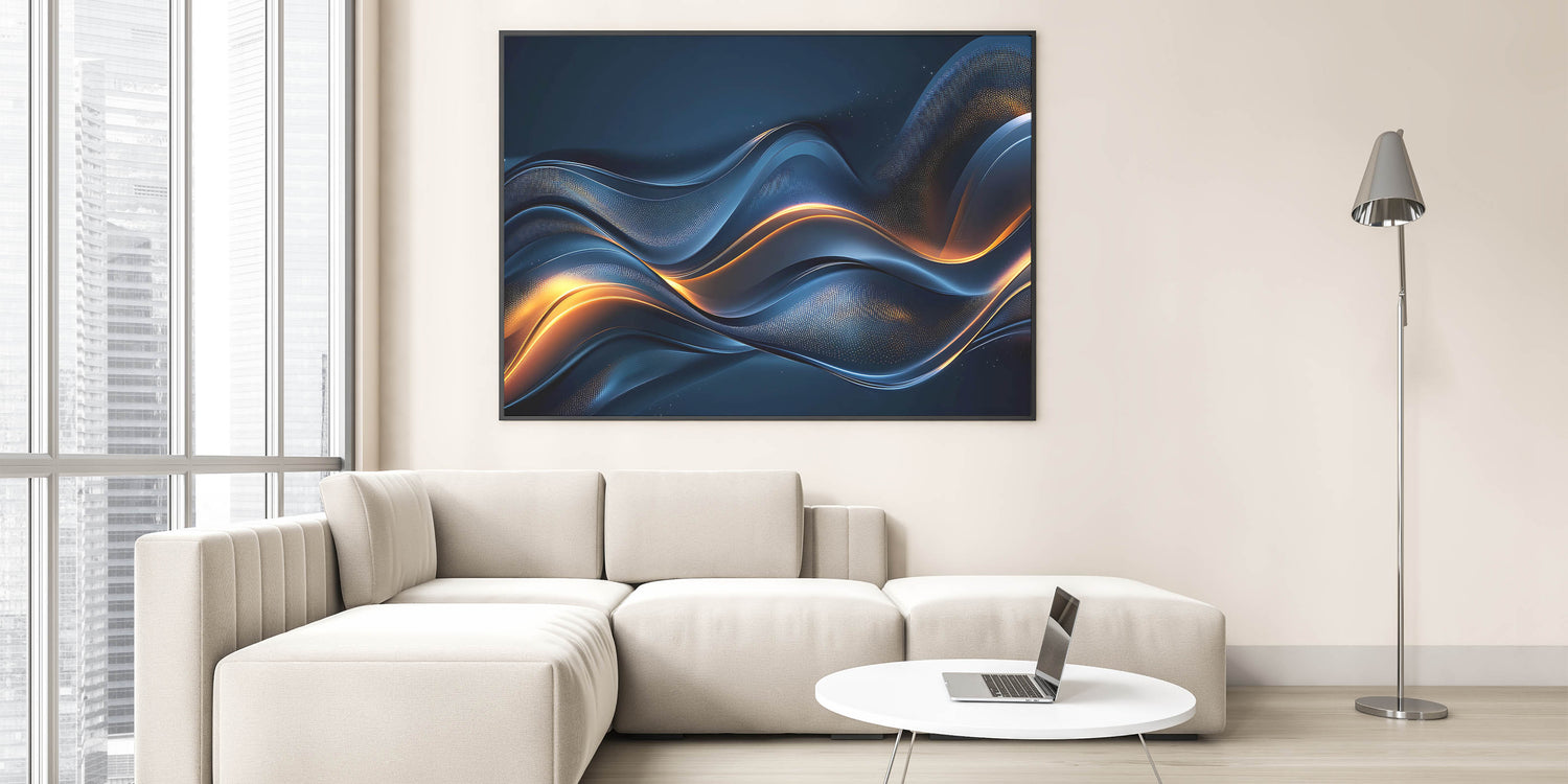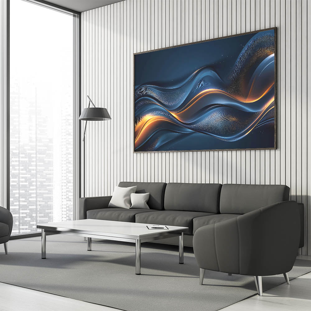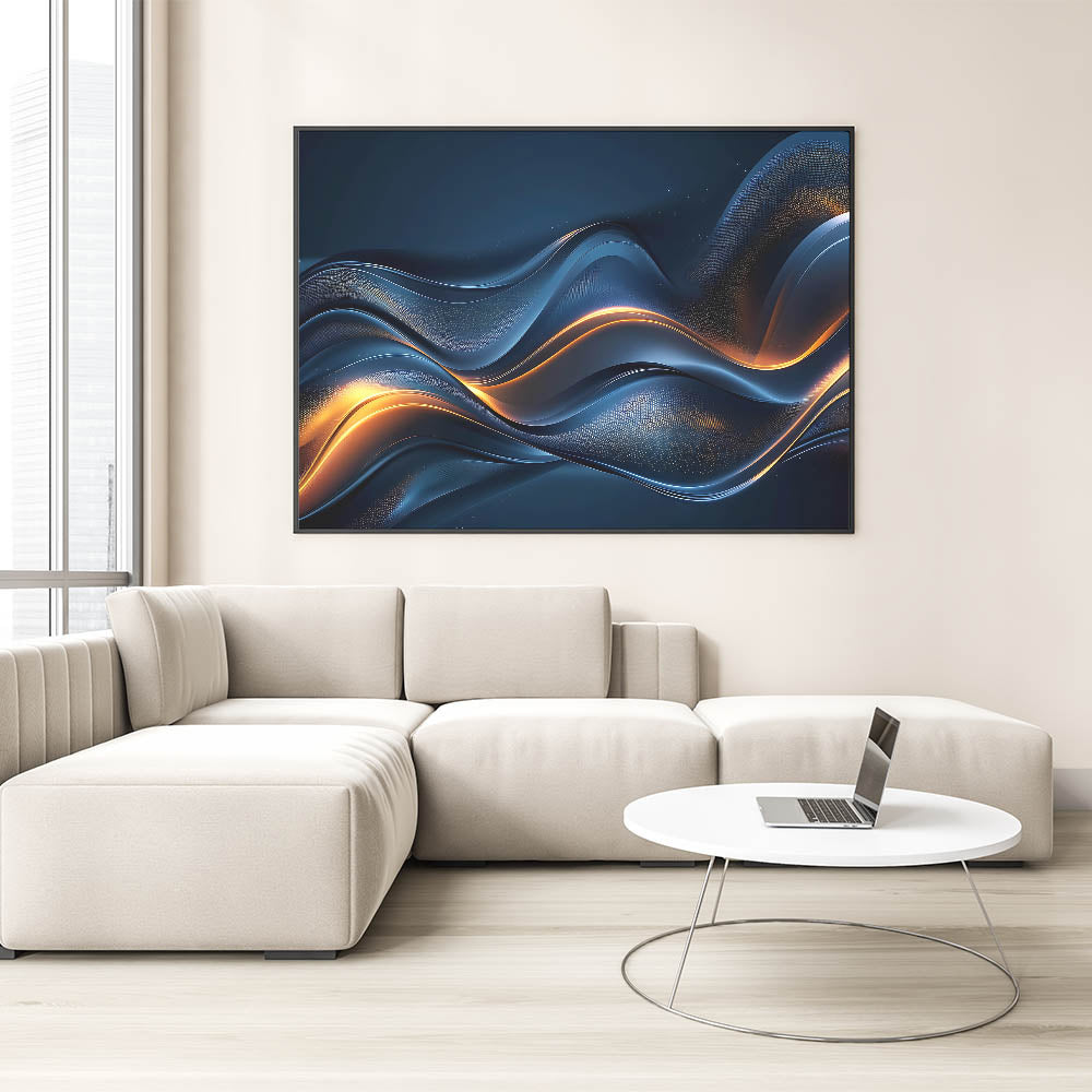 This design is a standout in modern abstract canvas prints for home decor, offering large abstract wall decor for living spaces with glowing contrast and captivating motion.