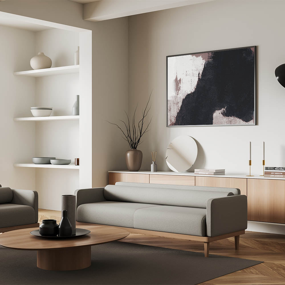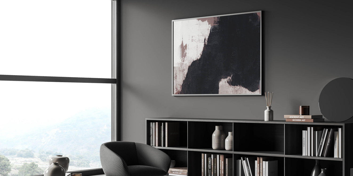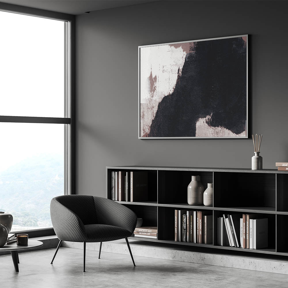 - A striking neutral abstract print, ideal for industrial, minimalist, and contemporary interiors.