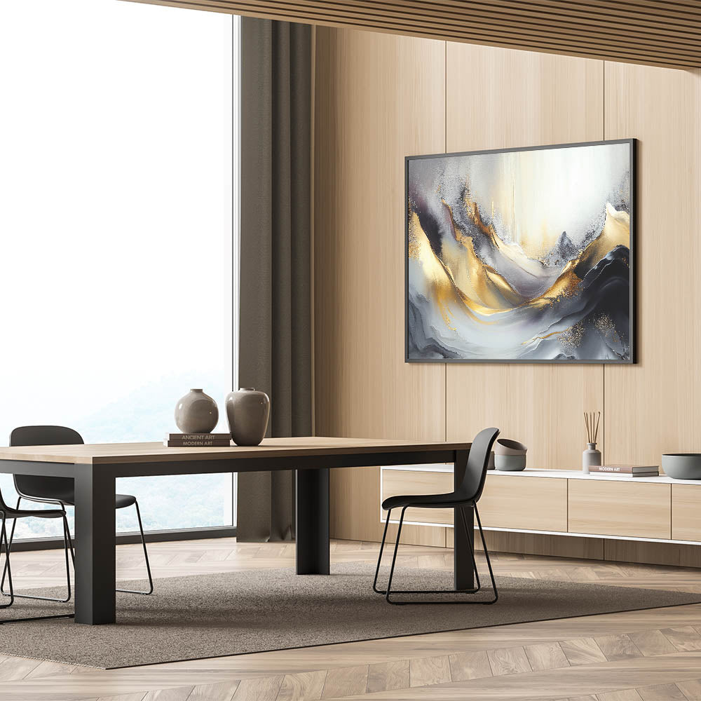 This sophisticated abstract art transforms any room with its upscale aesthetic. Whether placed in an elegant living space or a high-end office, this masterpiece will elevate your space with premium abstract décor.