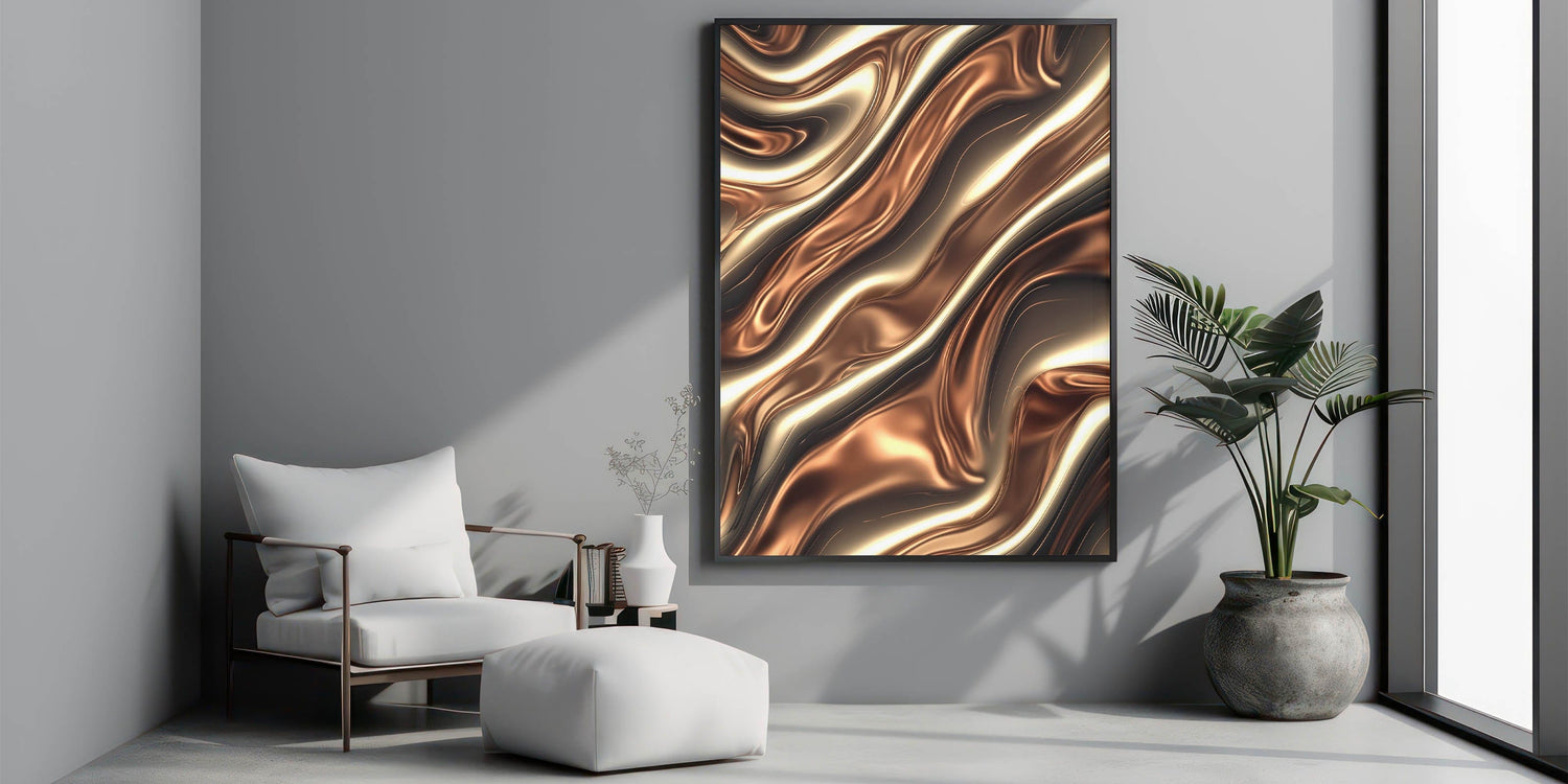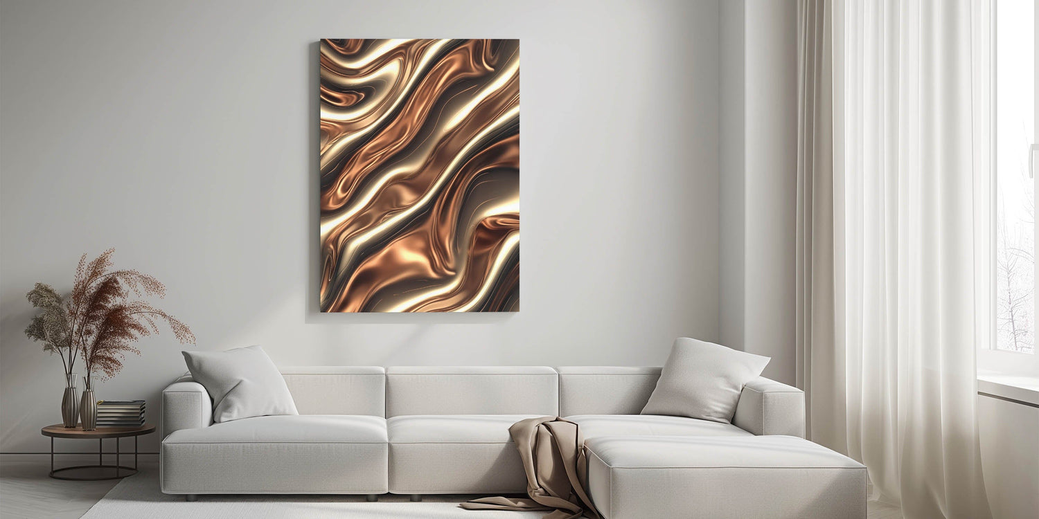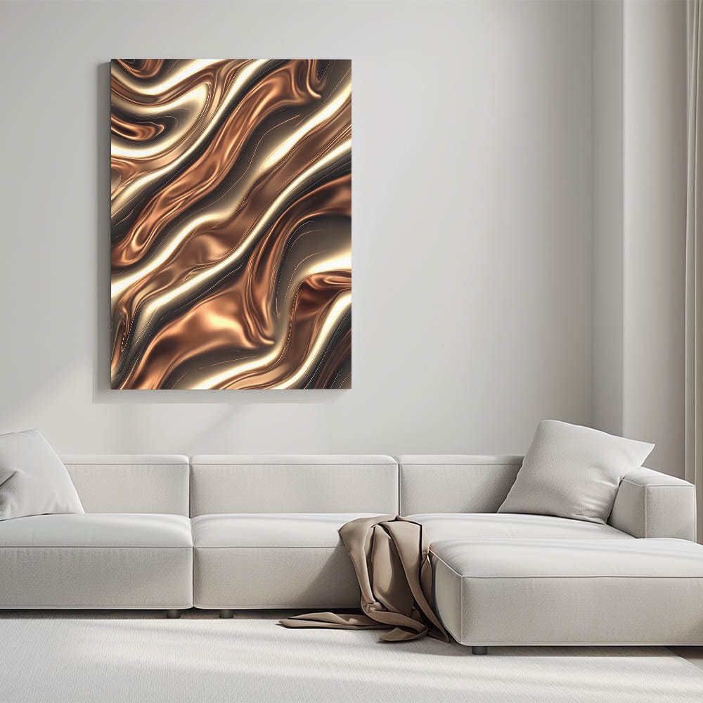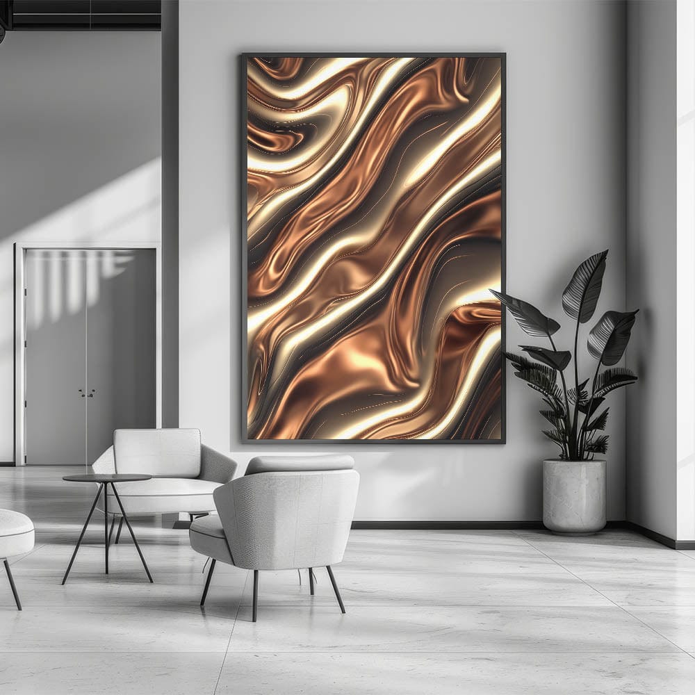 Experience the richness of metallic textures with this captivating piece from our Fluid Abstract Art Collection. Featuring deep bronze, golden highlights, and sculpted wave-like forms, this design evokes a molten, liquid metal feel—sleek, sensual, and highly modern.