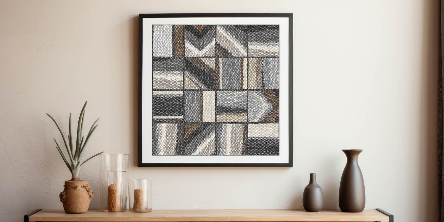This contemporary framed abstract art adds structure, rhythm, and dimension to any space. Whether you’re curating a gallery wall or enhancing a home office, its earthy palette and grid-based layout provide harmony and visual interest. Available in framed, canvas, acrylic, or rolled formats for flexible, modern styling.