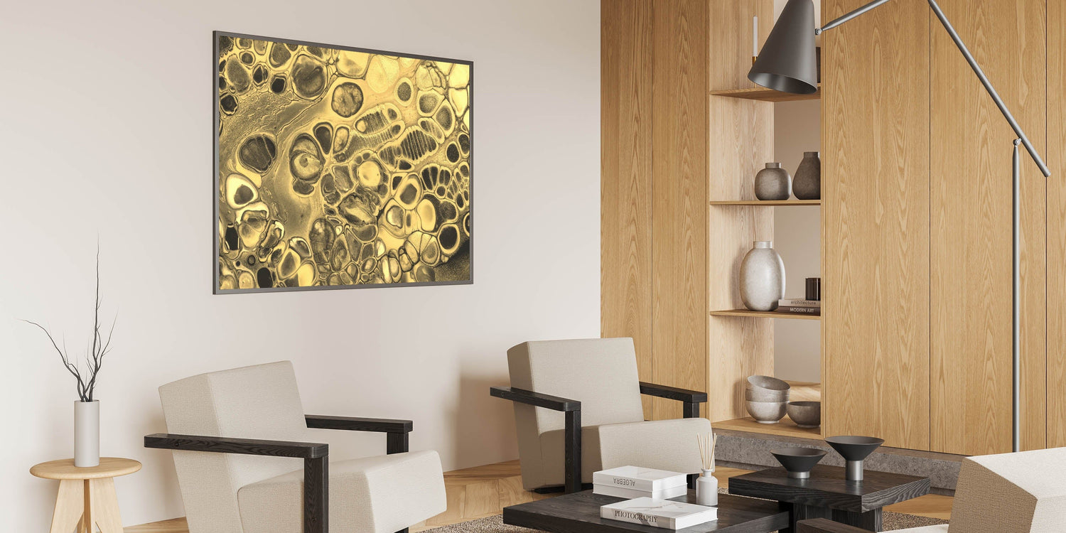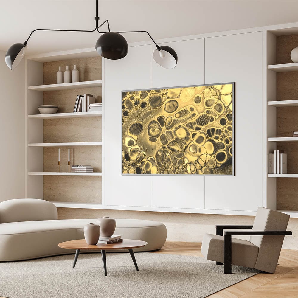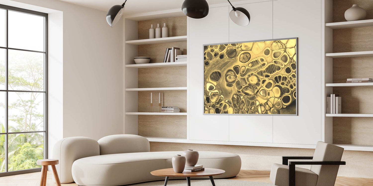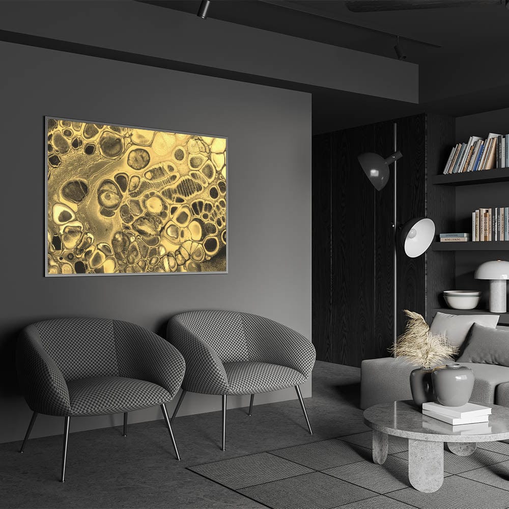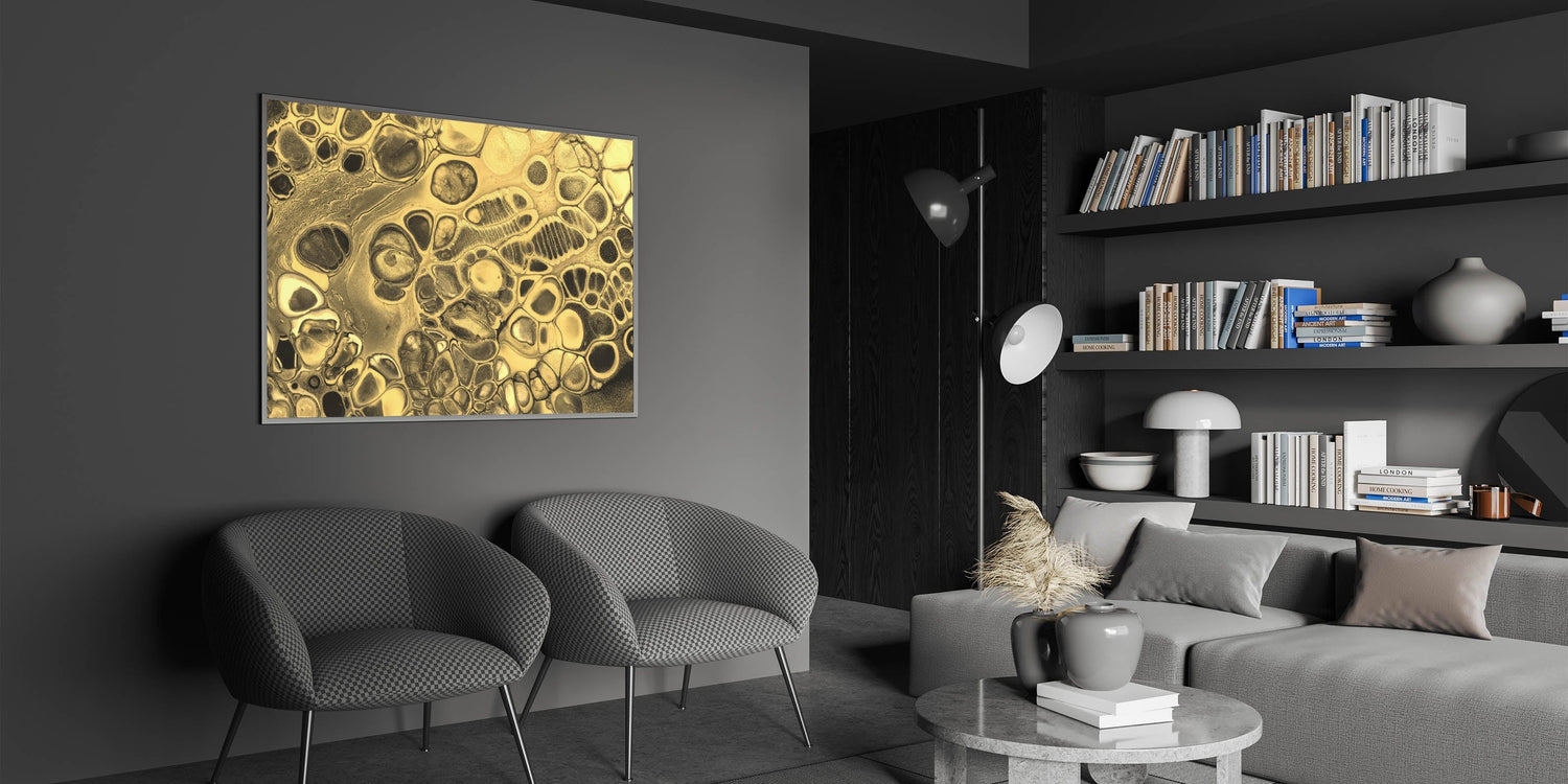 Infuse your space with sophistication with this luxury gold fluid art. Featuring a striking blend of shimmering gold and deep black, this elegant abstract canvas embodies opulence and modern artistry. The intricate fluid textures and dynamic patterns create a mesmerizing visual effect, making it a statement piece for any interior.