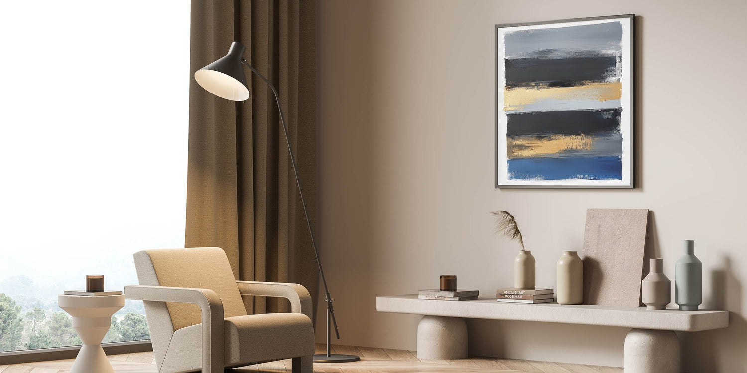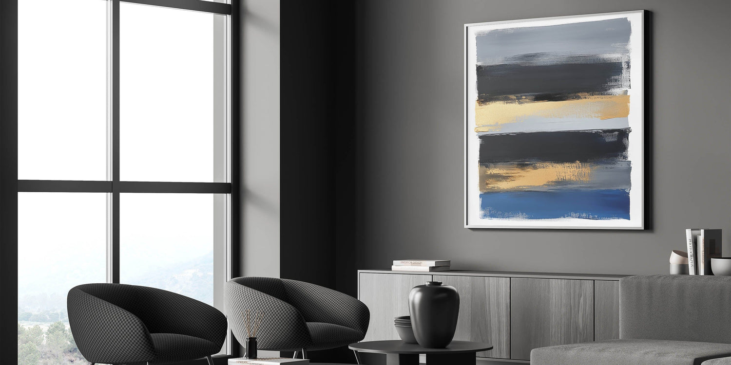 • Bold horizontal brushwork creates a structured feel, making it ideal as large abstract wall art for living rooms, offices, or creative spaces