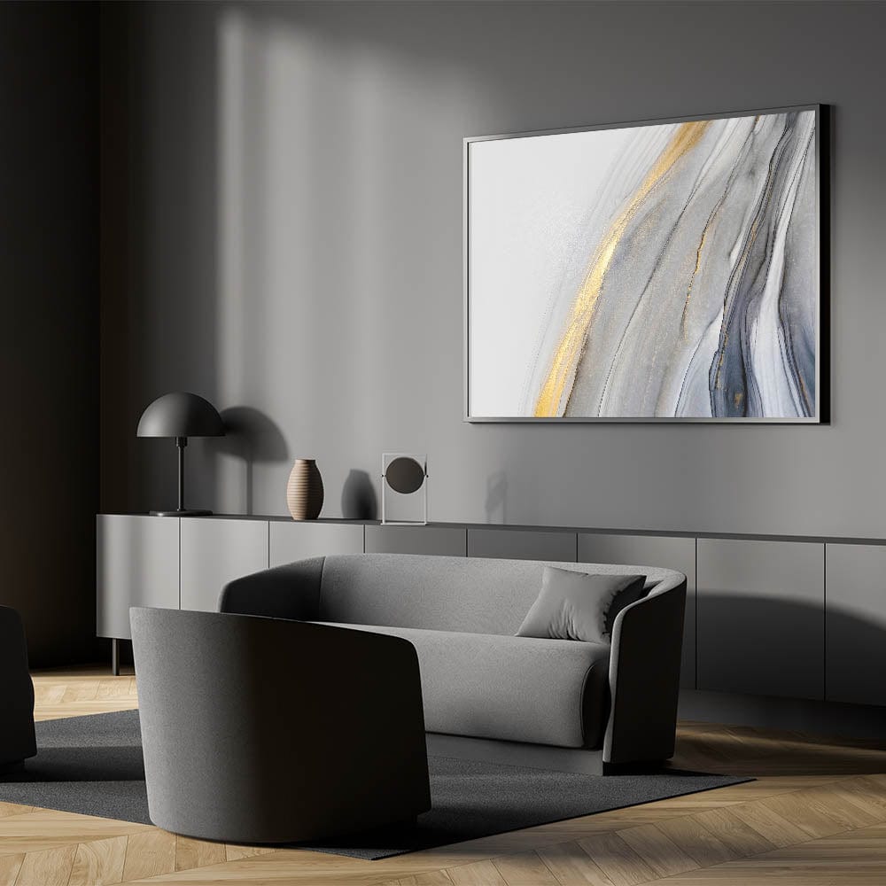 Elevate your home or office decor with our sophisticated Modern Fluid Art Prints from the exclusive Fluid Abstract Art Collection. Featuring elegant abstract fluid canvas art in delicate shades of gold, gray, and white, this artwork effortlessly combines luxury with contemporary minimalism.
