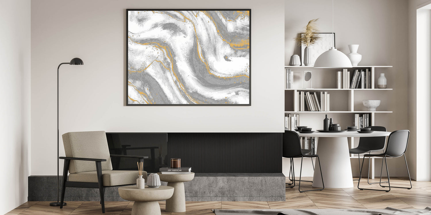 Textured Acrylic Wall Art – Silver, Gray, and Gold Marble Effect