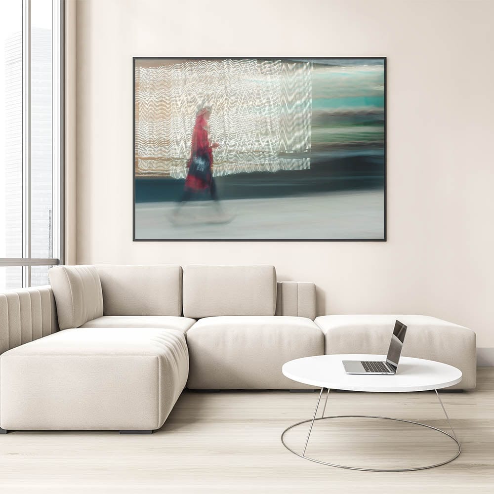 Experience the energy of city life with this captivating cityscape photography print. Featuring a blurred motion shot of a figure walking past a dazzling urban backdrop, this artwork conveys movement, vibrancy, and the pulse of modern streets.