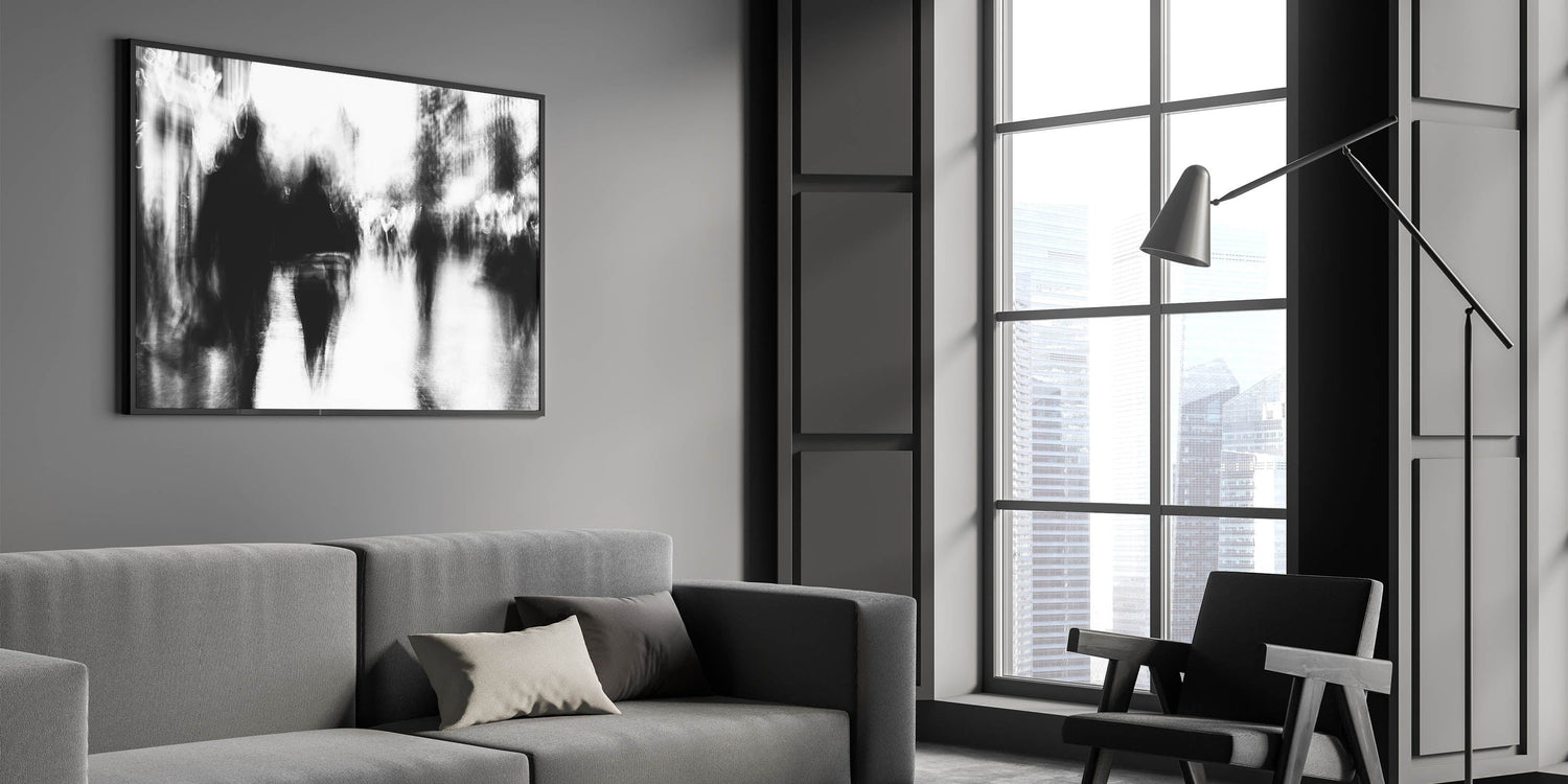 - Contemporary urban scenery print with a dramatic, dreamlike atmosphere
