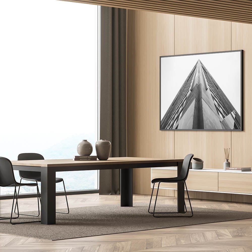This modern cityscape wall art embodies the beauty of urban engineering, capturing the intersection of structure and design. The strong architectural lines and high-contrast shadows create a timeless yet contemporary feel, making it an excellent statement piece for lovers of urban landscape photography decor. Whether displayed in a sleek office or a sophisticated home, this artwork adds depth, movement, and a bold modern aesthetic to any space.